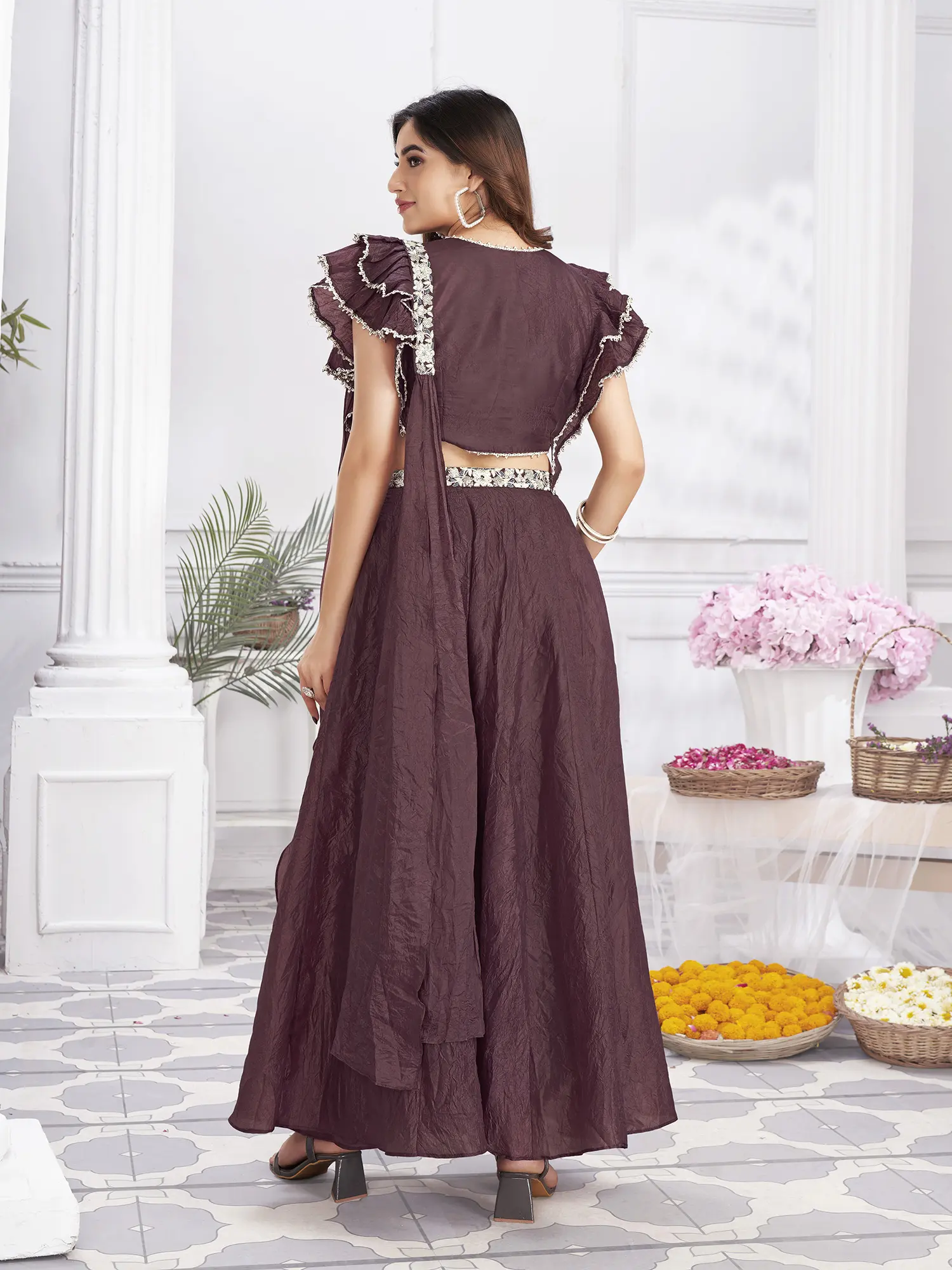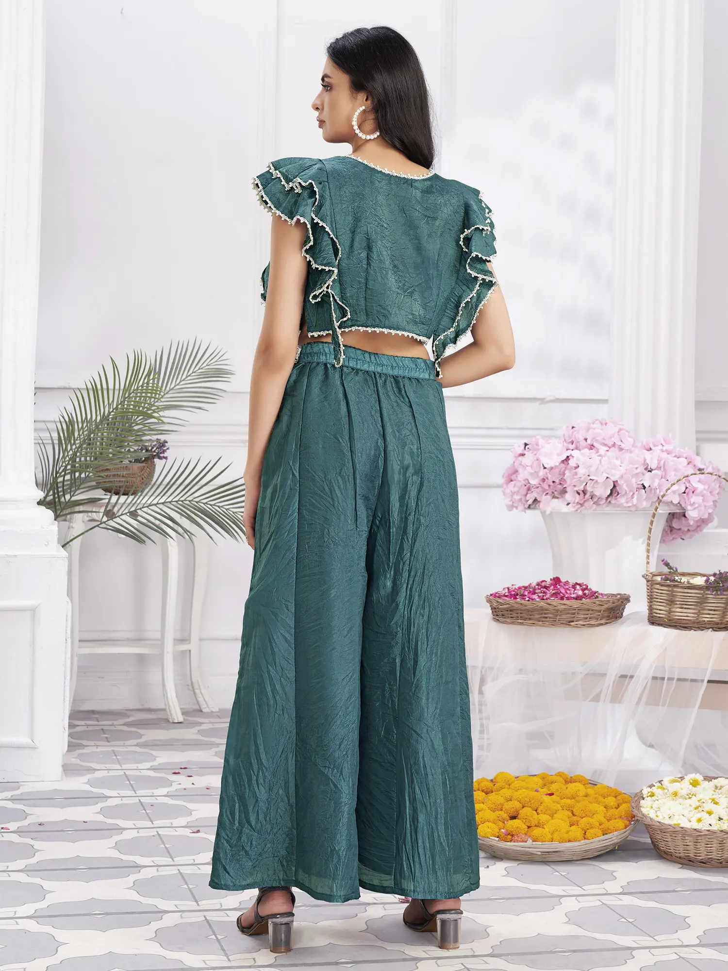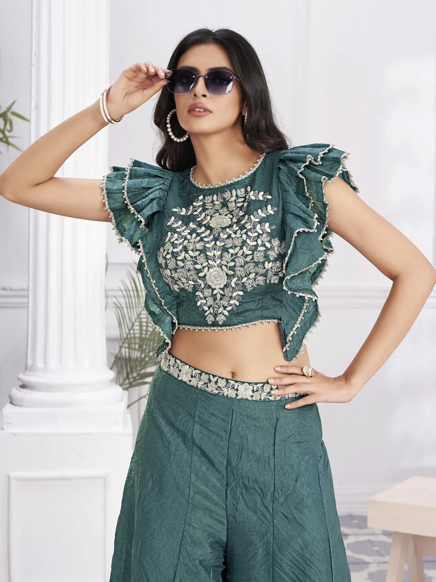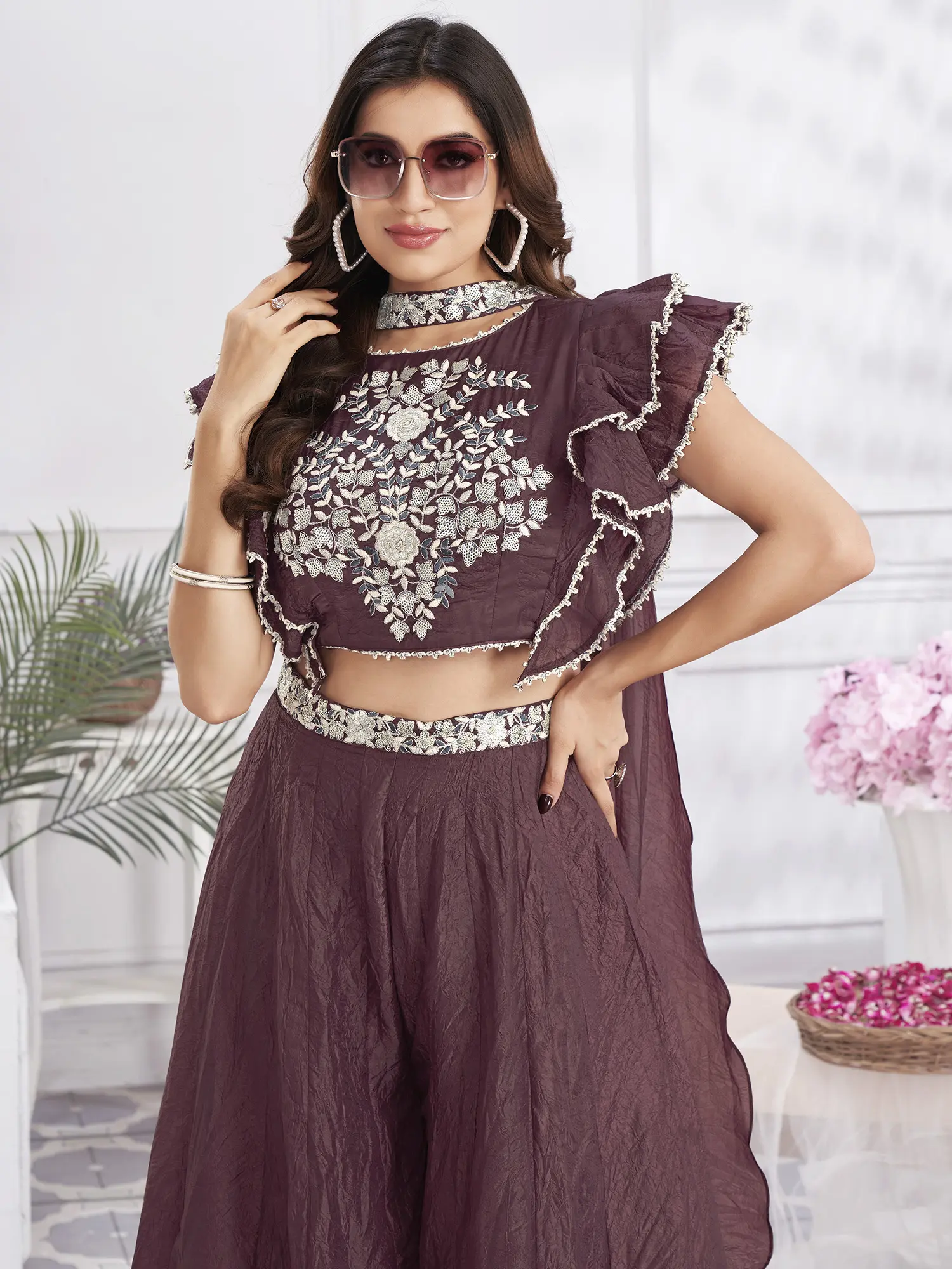 Win the festive fashion game with this designer hand-embroidered crop top and palazzo set.