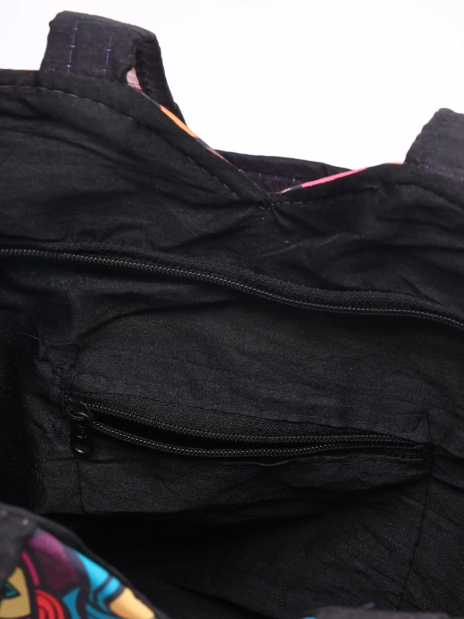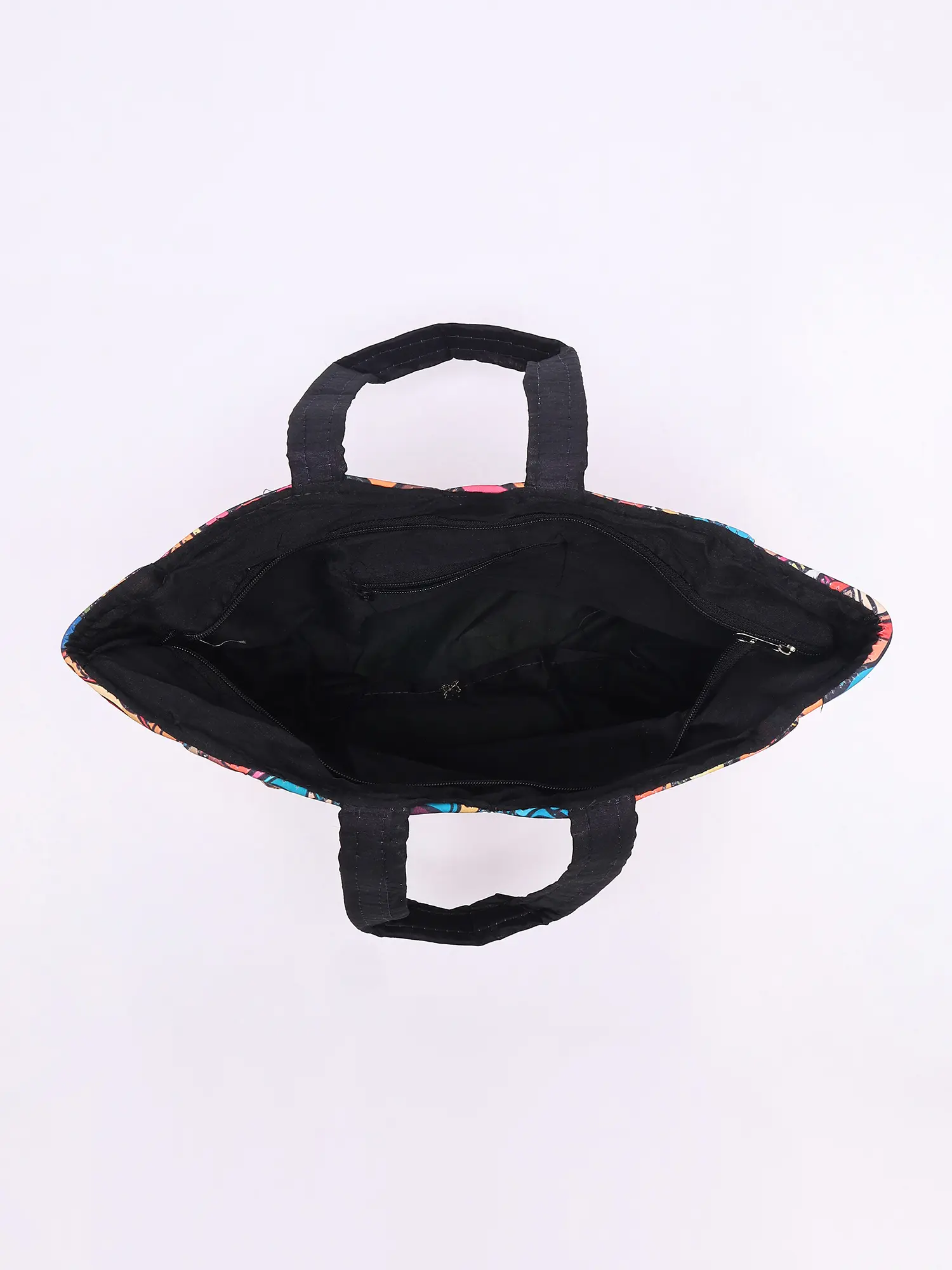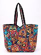 Shopper Bag with Printed Multicolor Paisleys and Zipper Closure