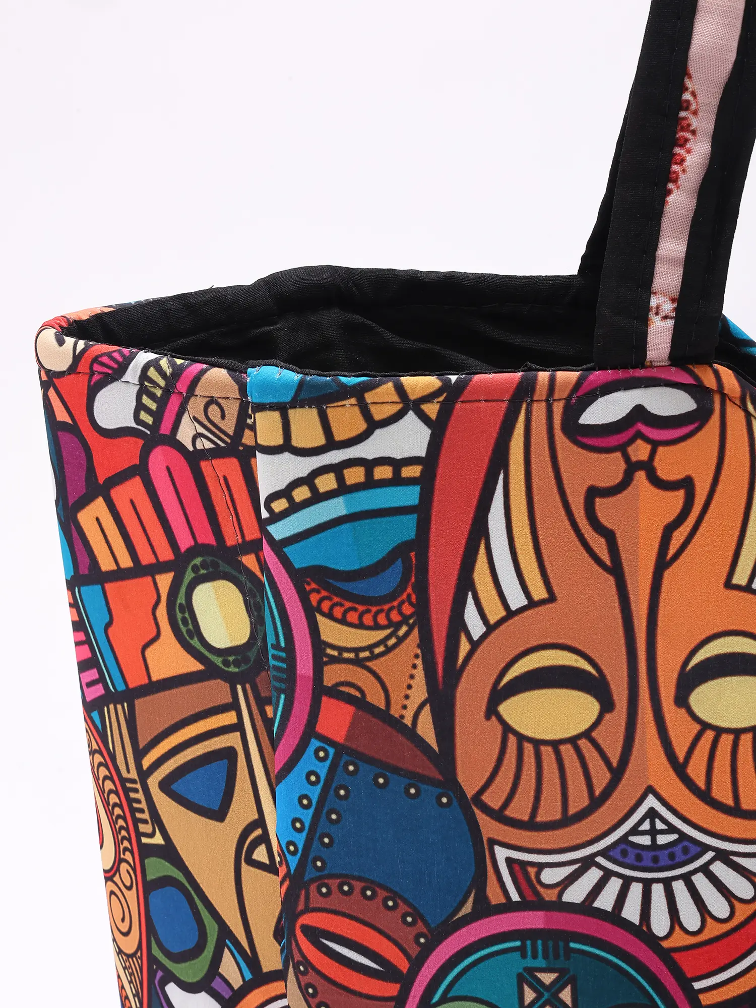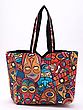 Shopper Bag with Printed African Tribal Mask on All-Over