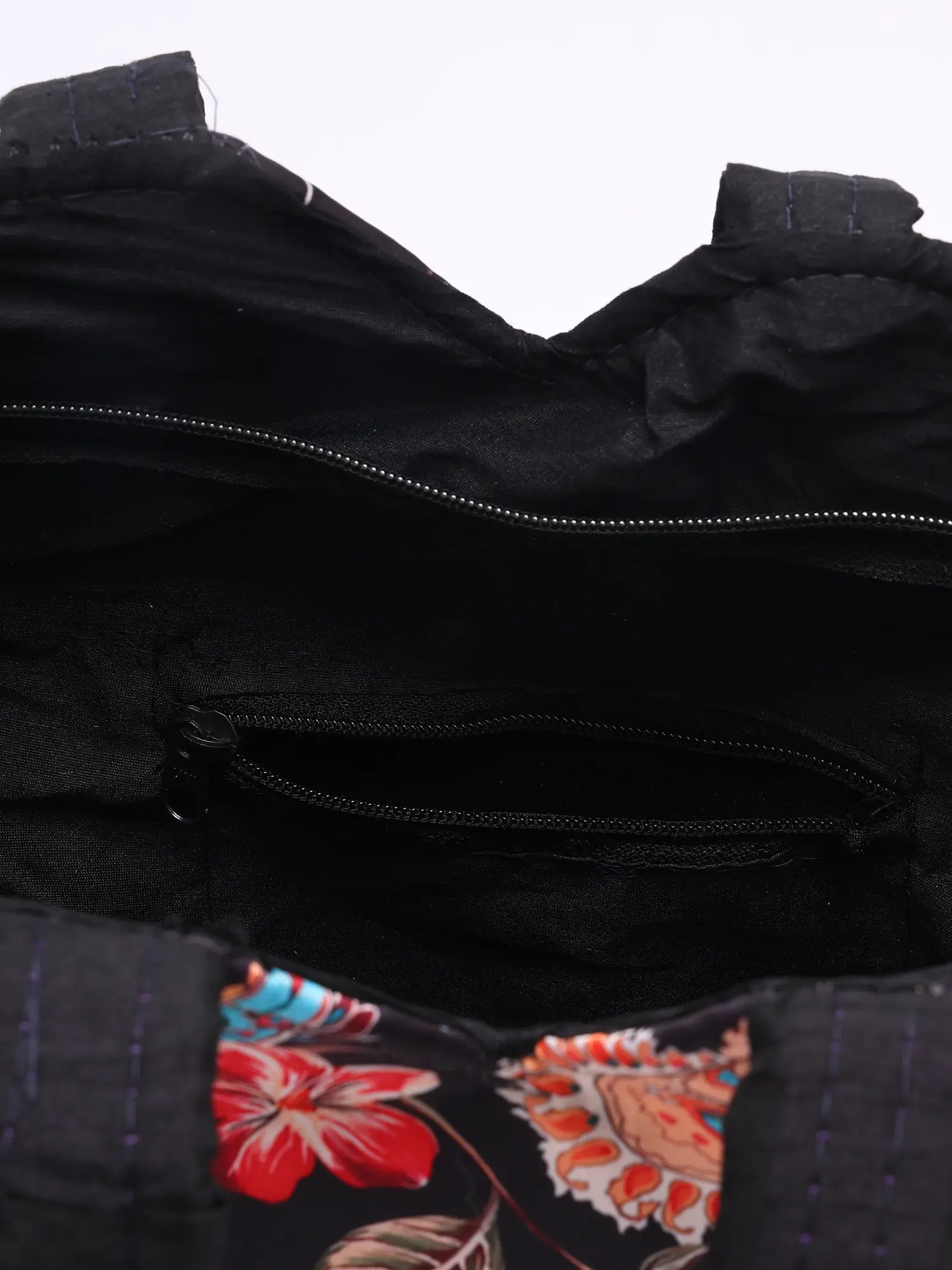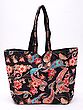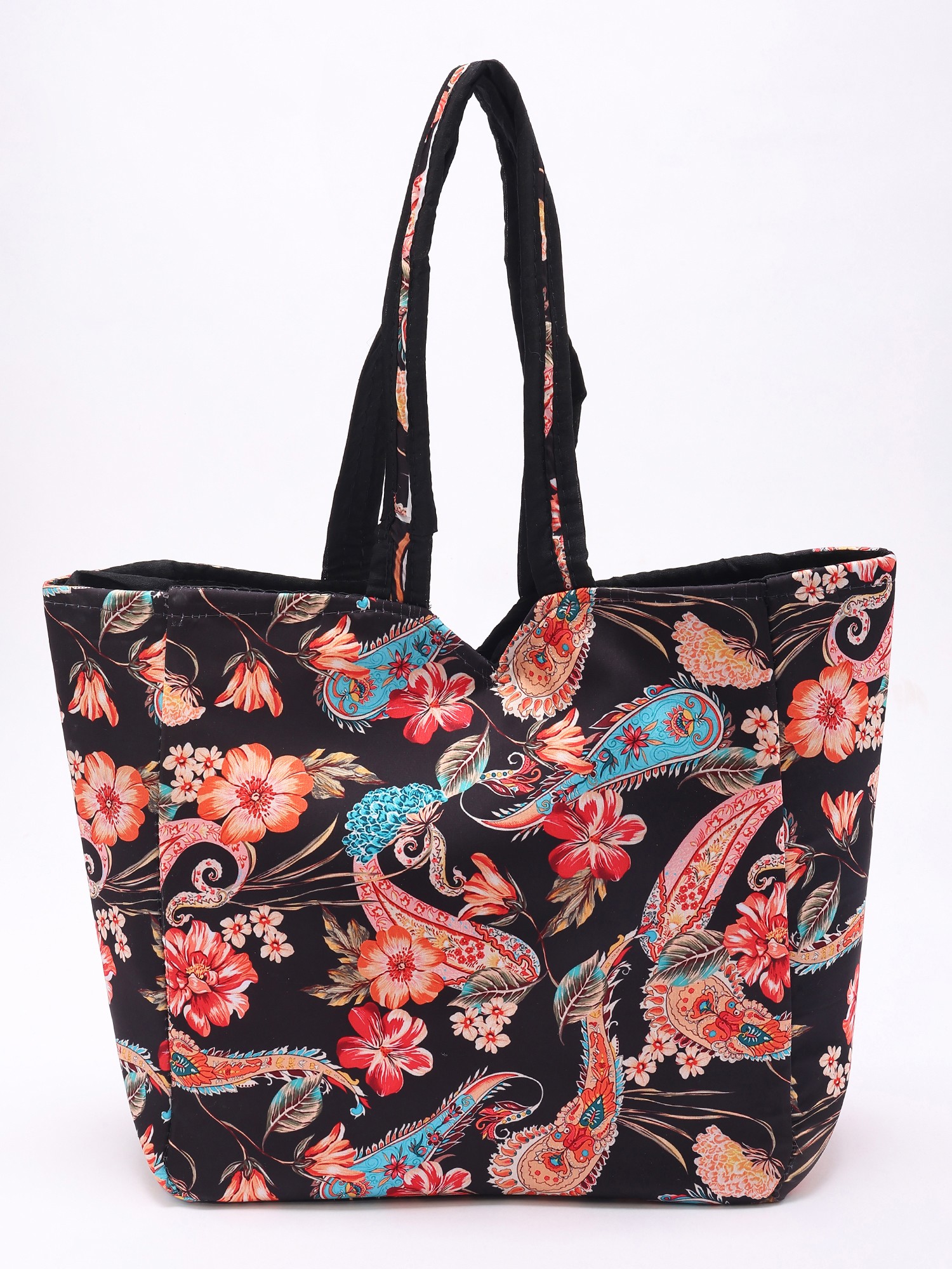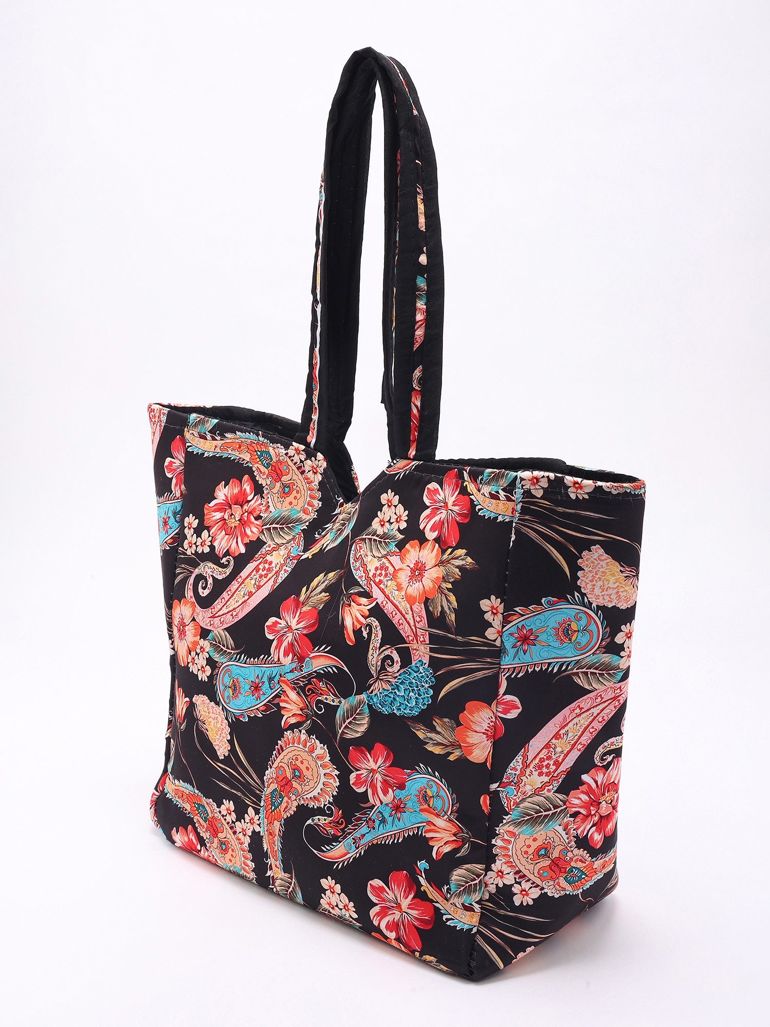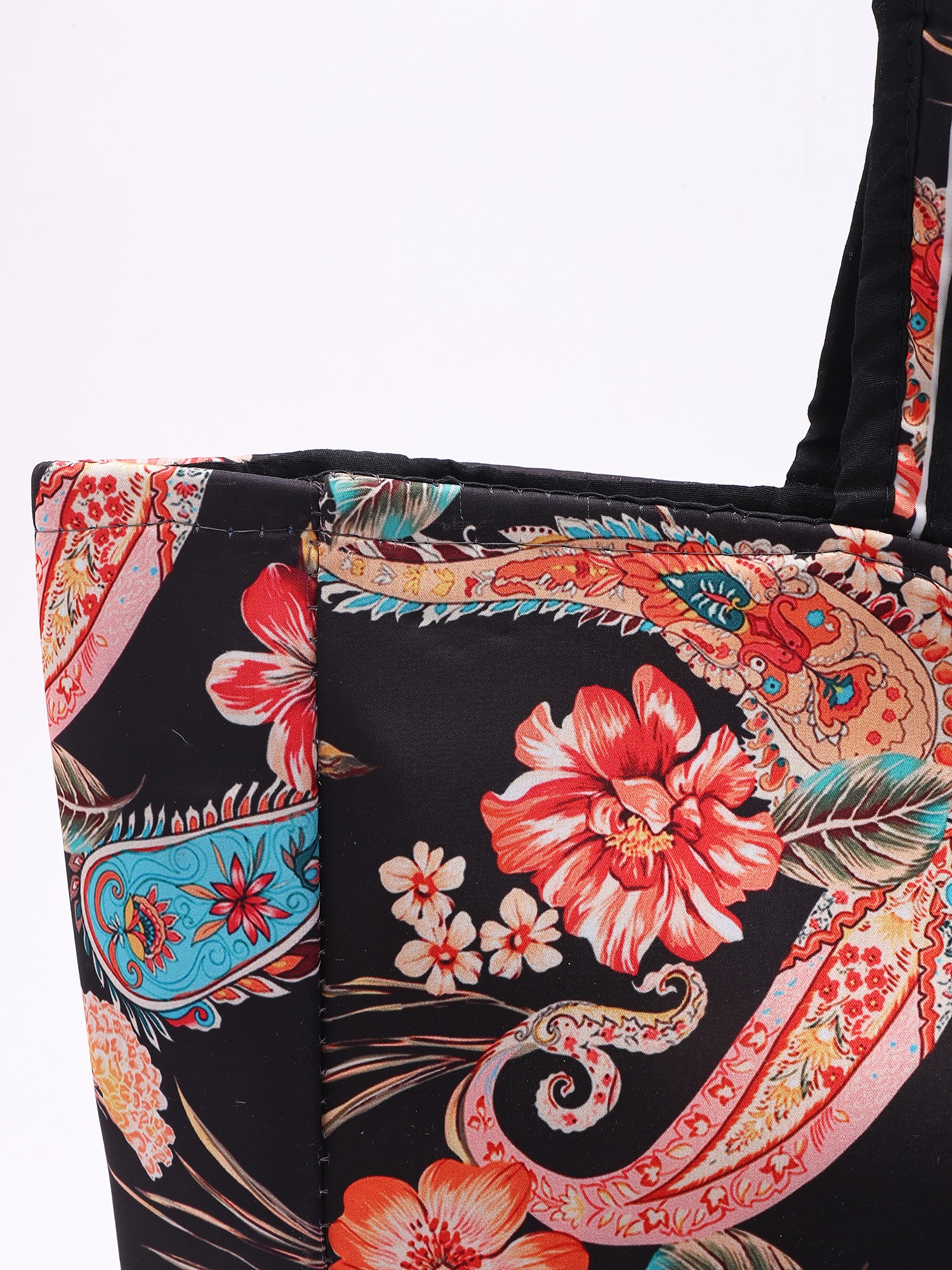 Shopper Bag with Printed Multicolor Paisleys and Zipper Closure