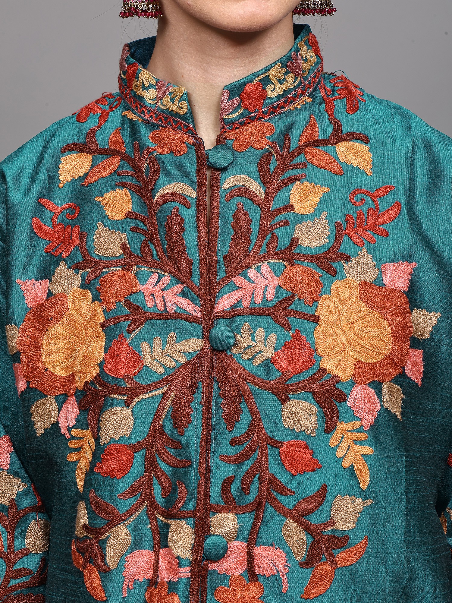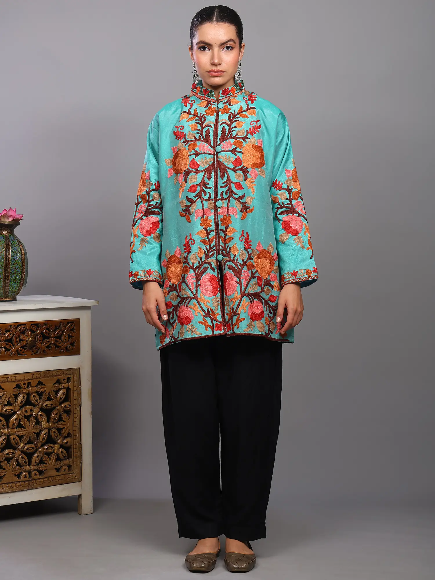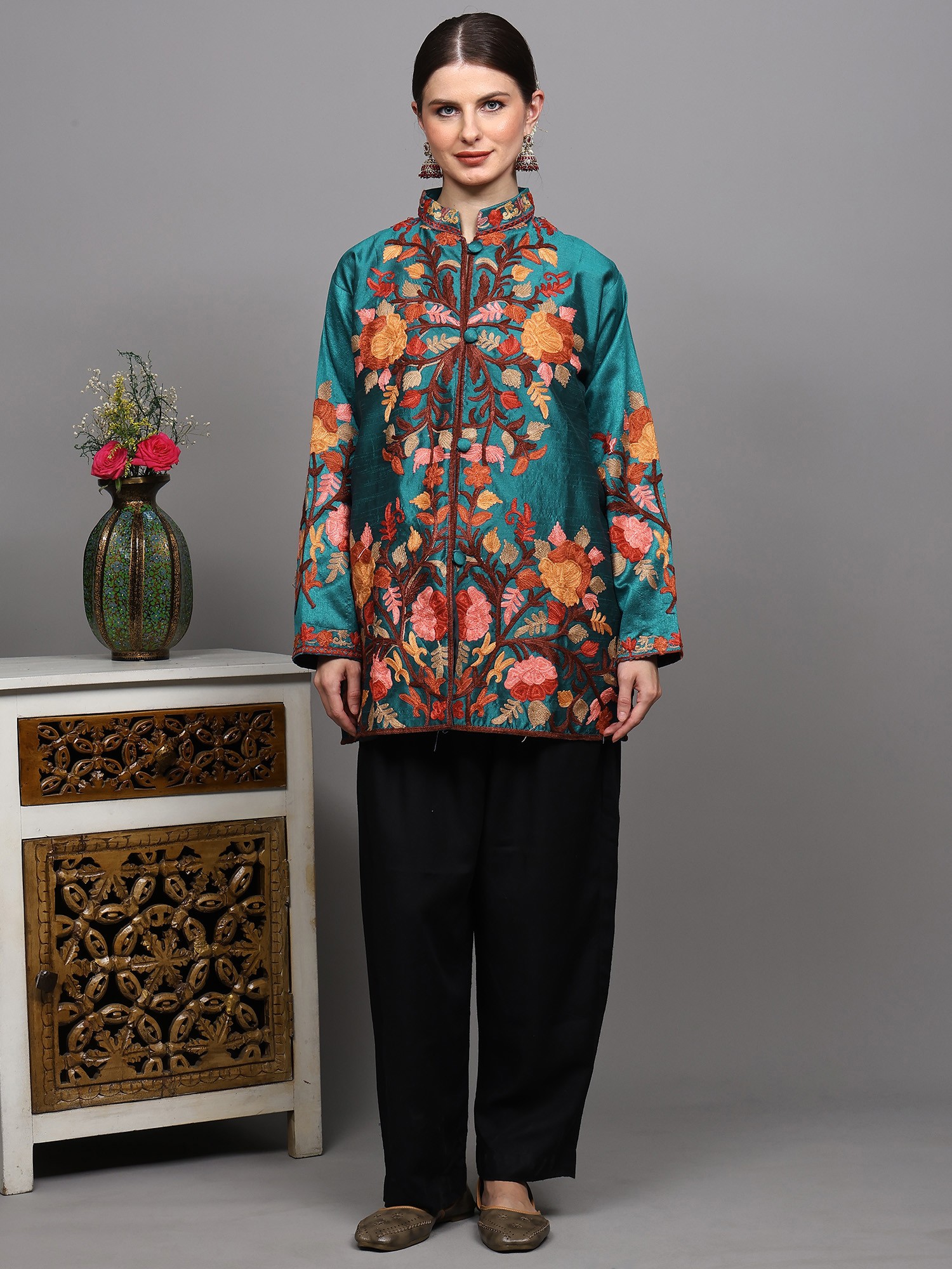Kashmiri Short Jacket with Paisleys Hand Aari Embroidery on Border