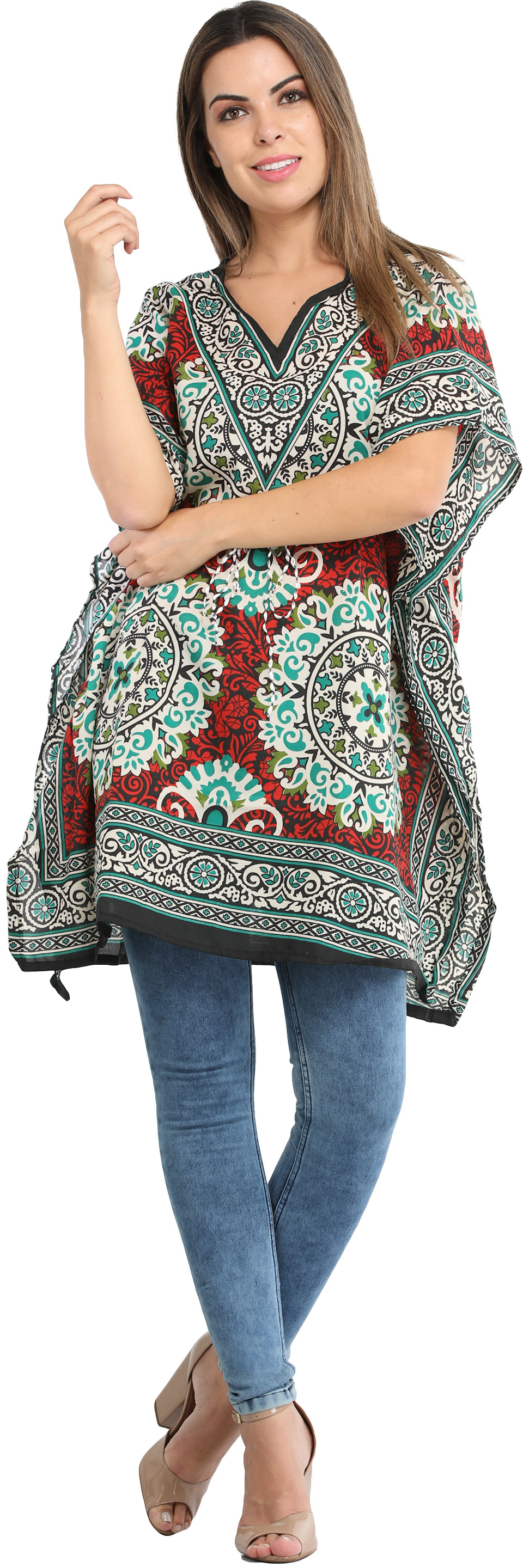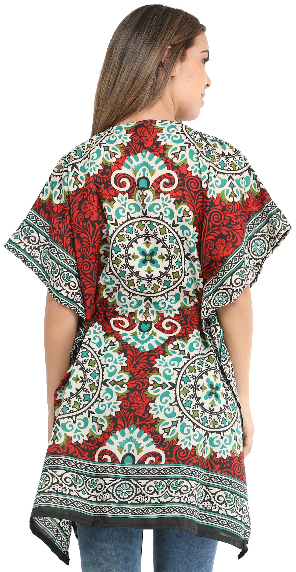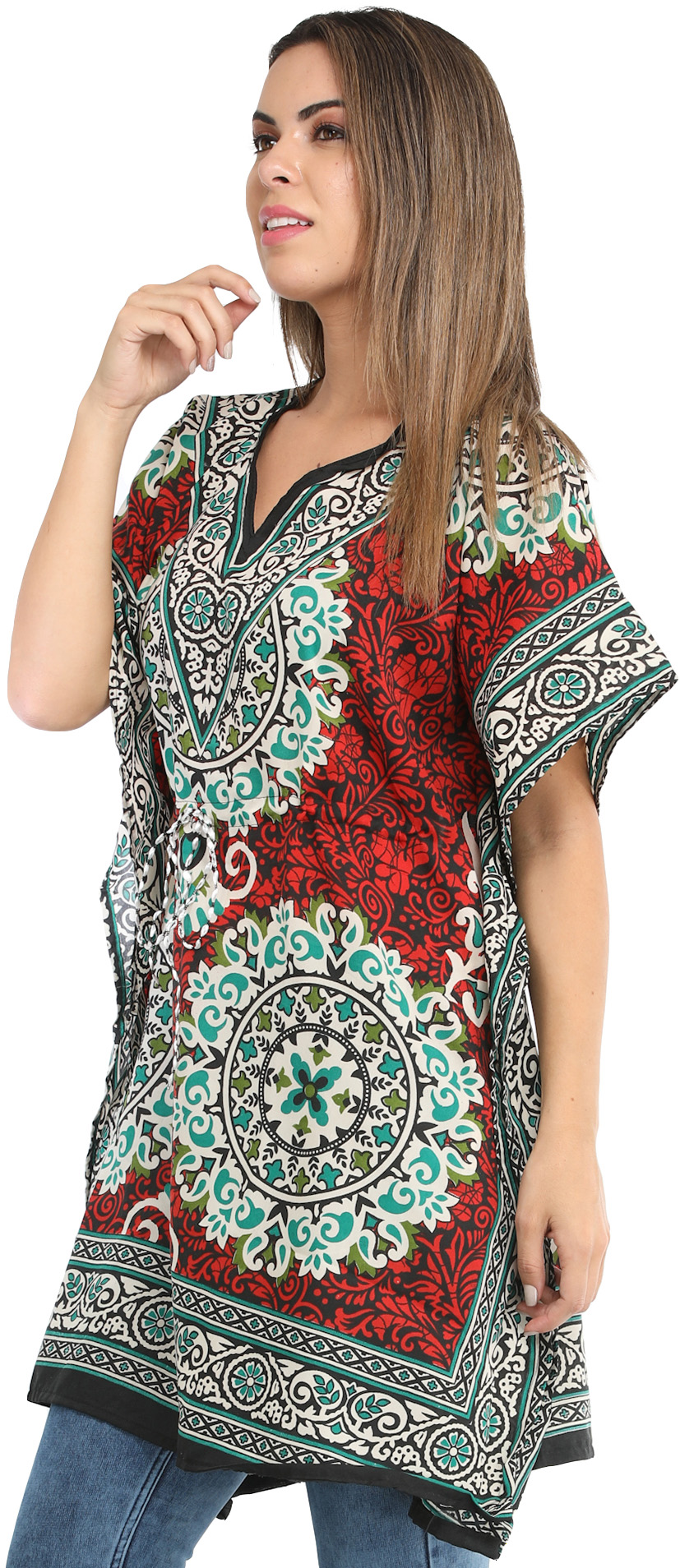 Blue-Turquoise Printed Georgette Short Kaftan
