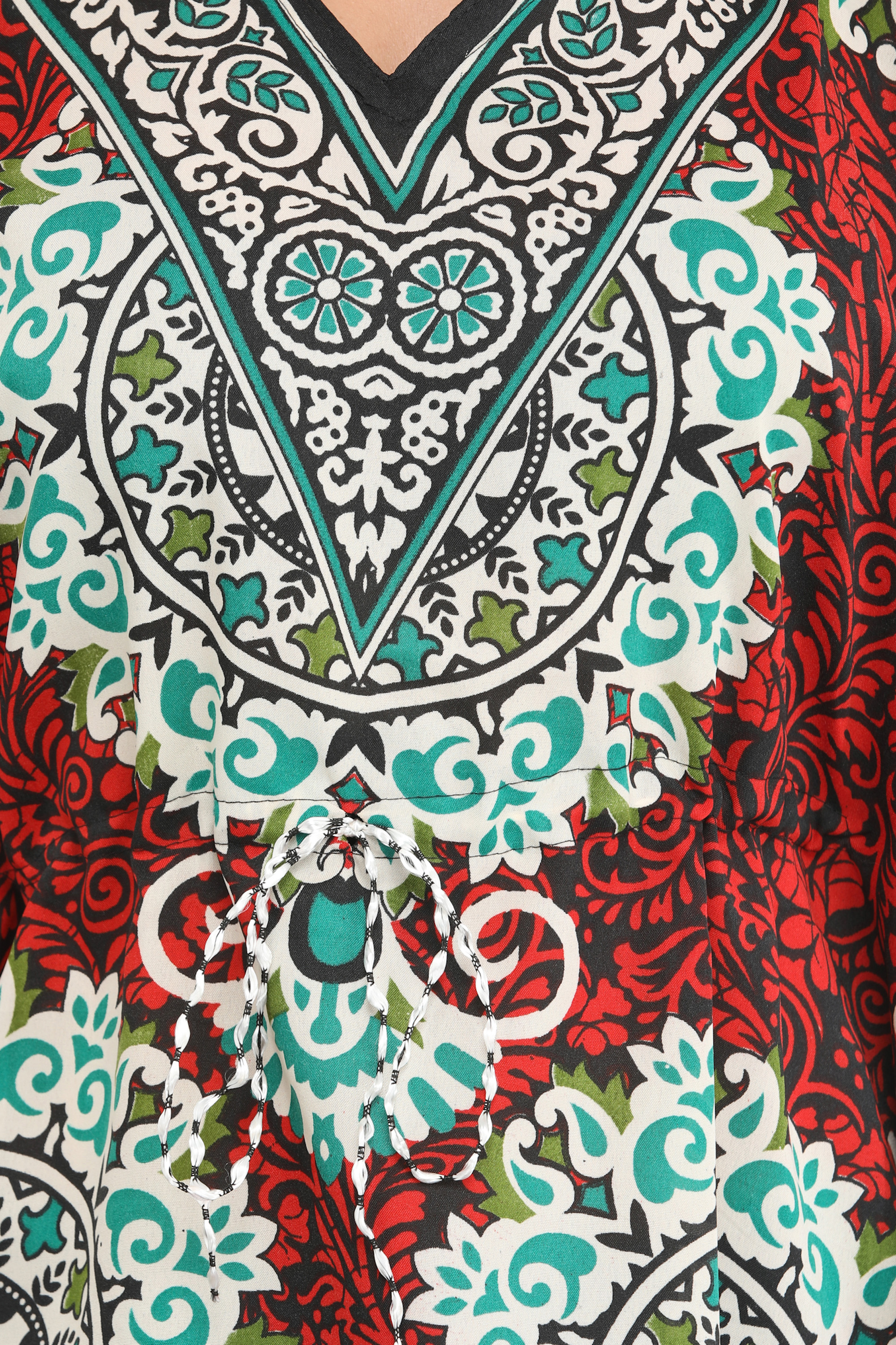 Rainbow Stripe Printed V-Neck Midi Kaftan