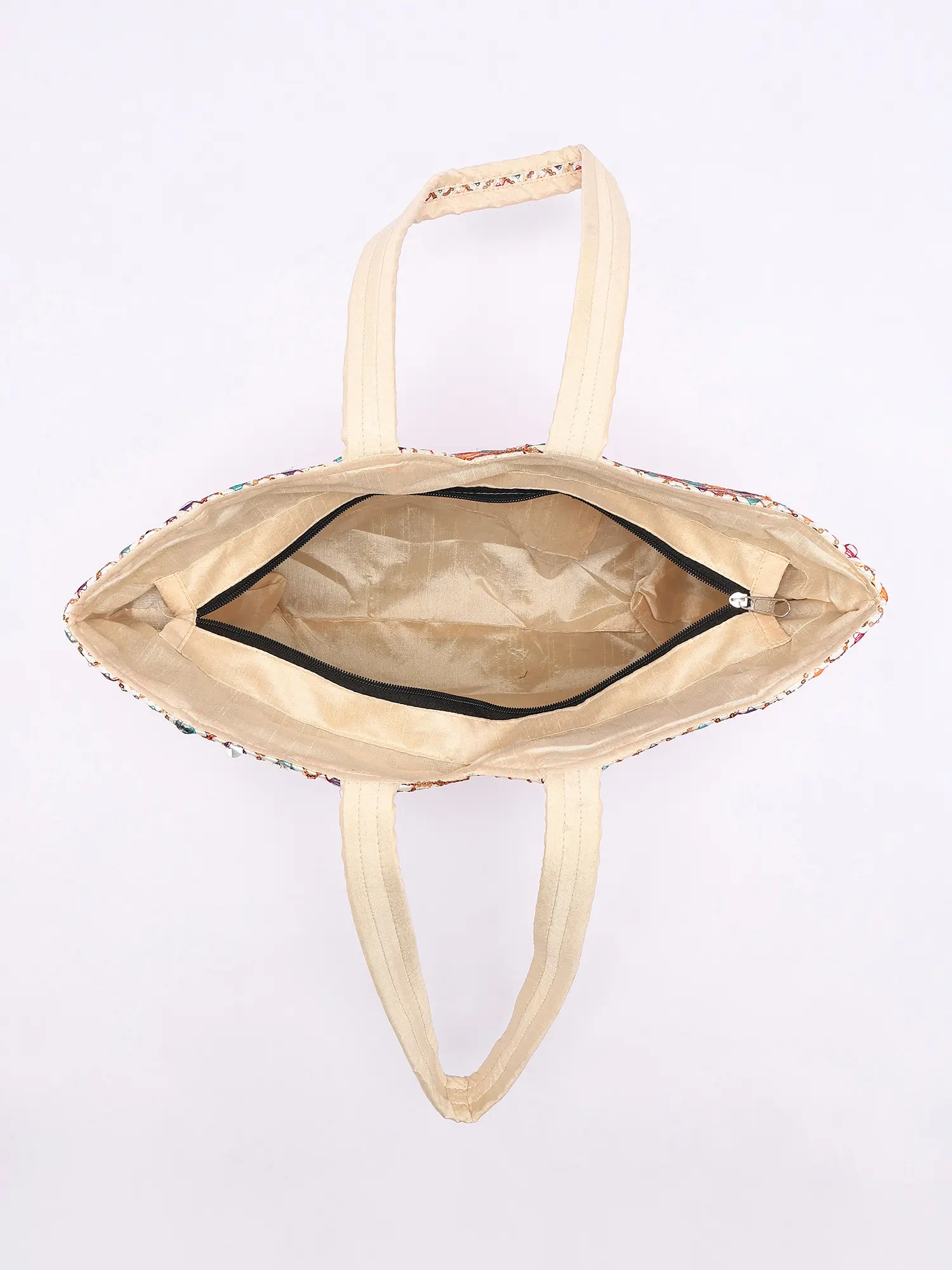 Patchwork Shoulder Bag with Bead-Sequins Embroidered Floral Paisleys from Kutch