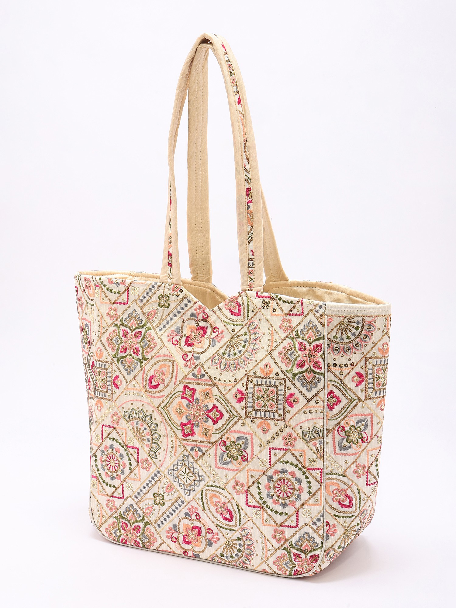 Chain Stitched Aari Embroidered Shopper Tote Bag from Kashmiri