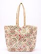 Shopper Bag with Printed Multicolor Paisleys and Zipper Closure