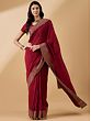 Beige and Red Designer Sari with Patch Border and Embroidered Blouse