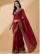 Silk Blend Embroidered Saree with Stone Work and Border with Floral Pattern
