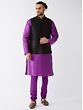 Three-Piece Kurta Pajama Set with Brocaded Front Open Waistcoat