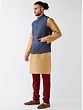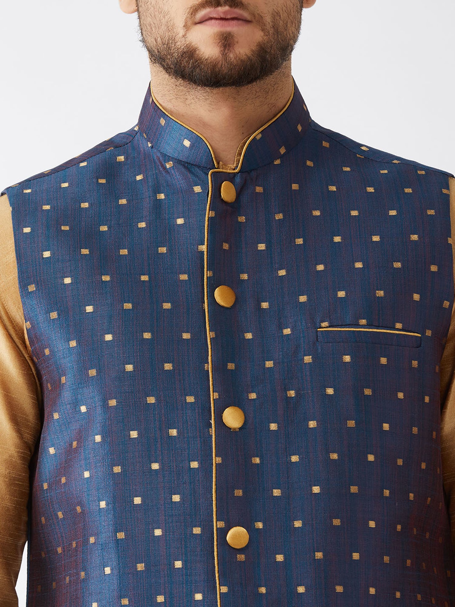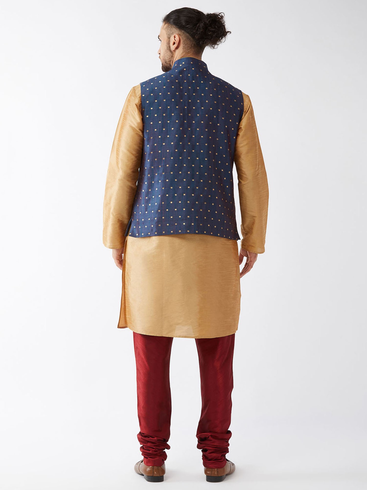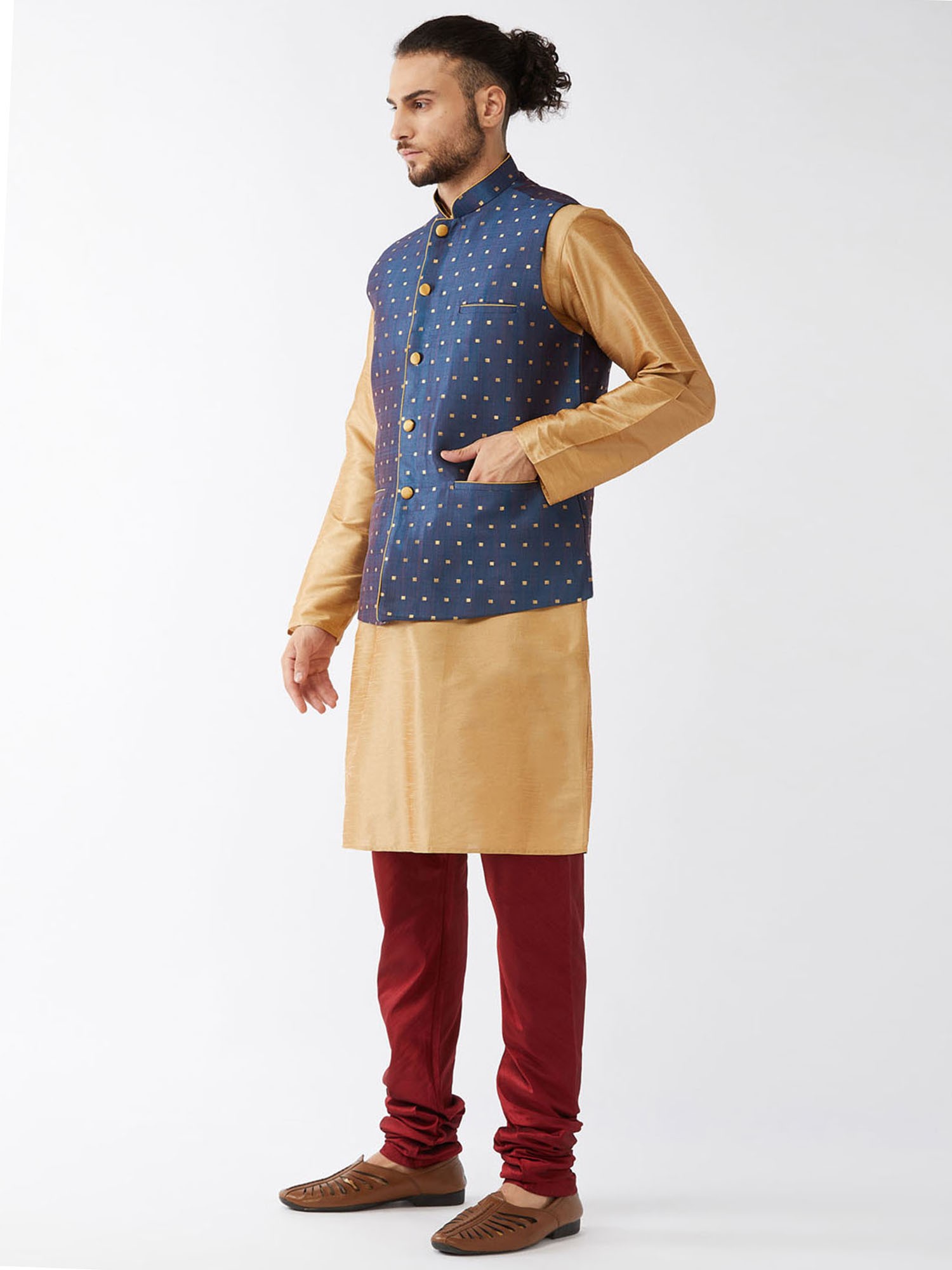 Three-Piece Golden-Beige Wedding Kurta Pajama Set with Brocaded Vest