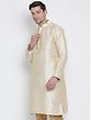 Crafted from a luxurious silk blend, this kurta exudes elegance and sophistication, perfect for formal occasions and cultural celebrations. The mandarin collar adds a touch of refinement to the silhouette, while i thread and zari work embellishments infuse the garment with a sense of opulence and grandeur. Each stitch is a testament to the artisanal skill and attention to detail of our master craftsmen, ensuring that every kurta is a work of art in its own right.