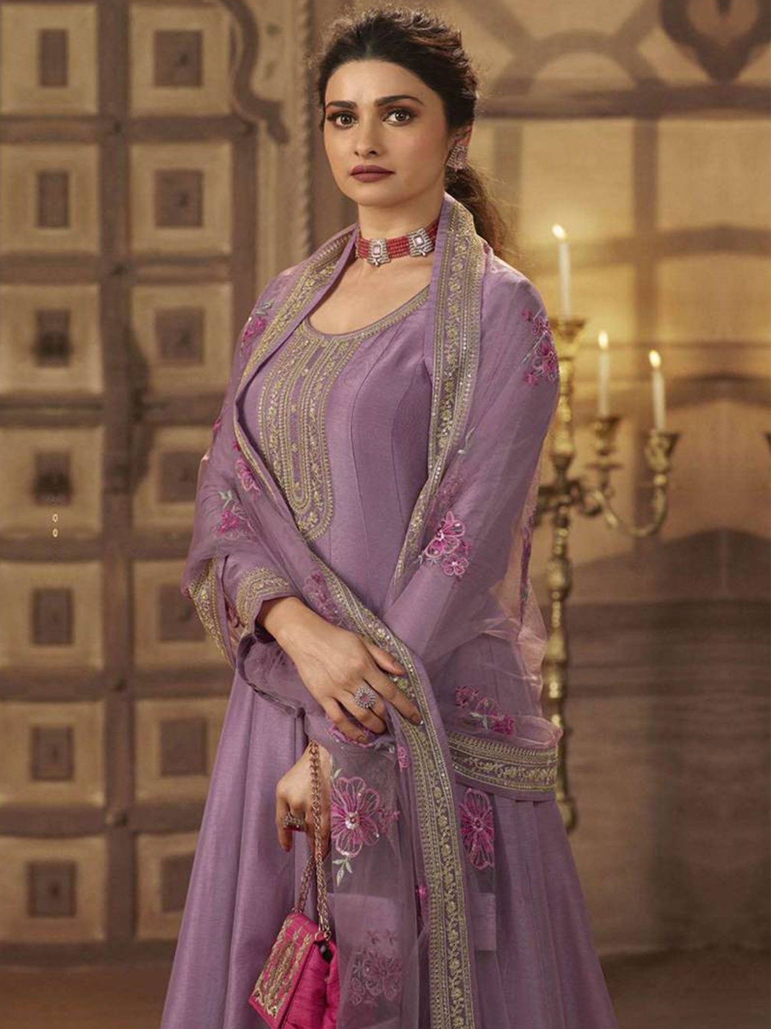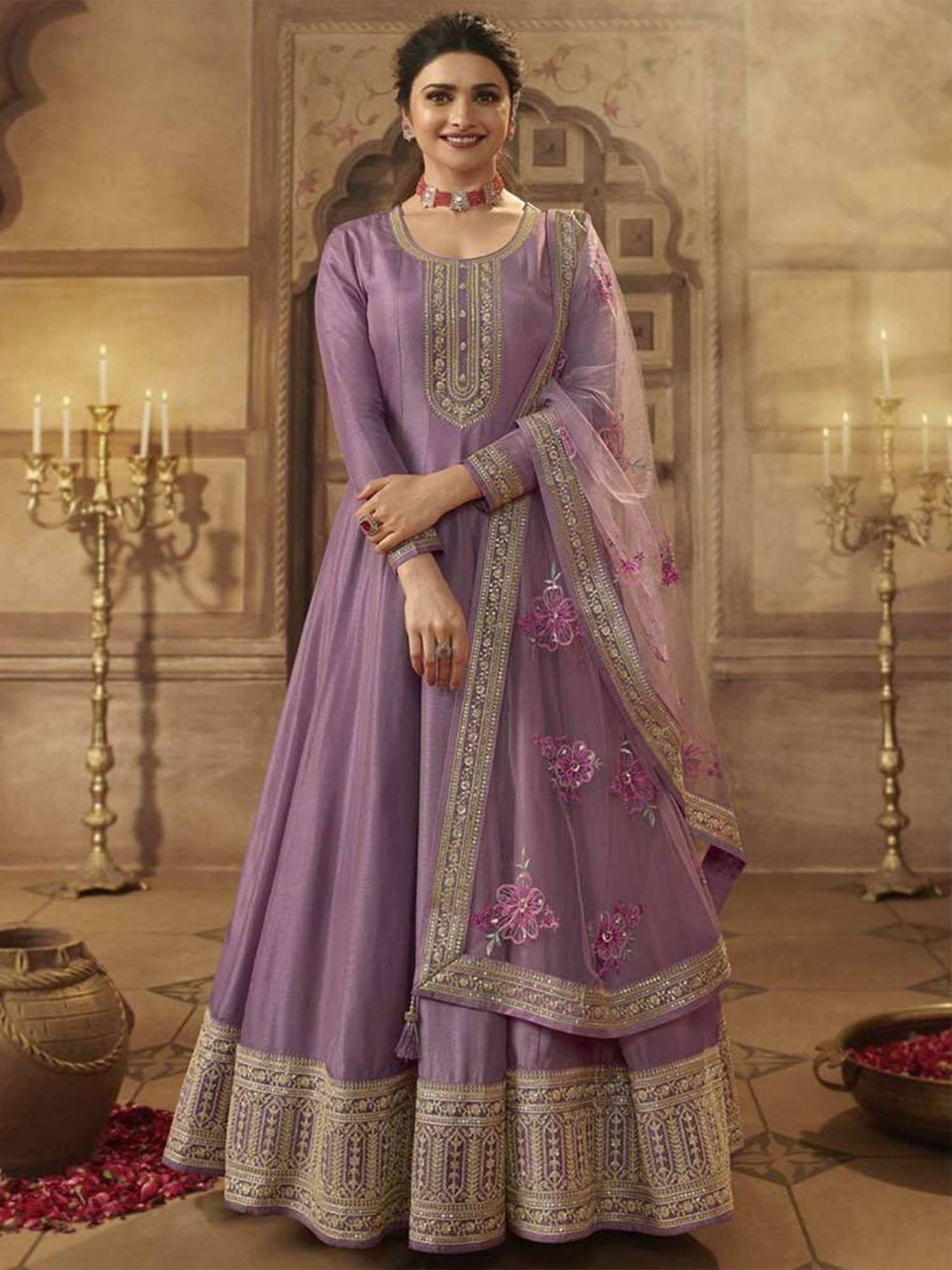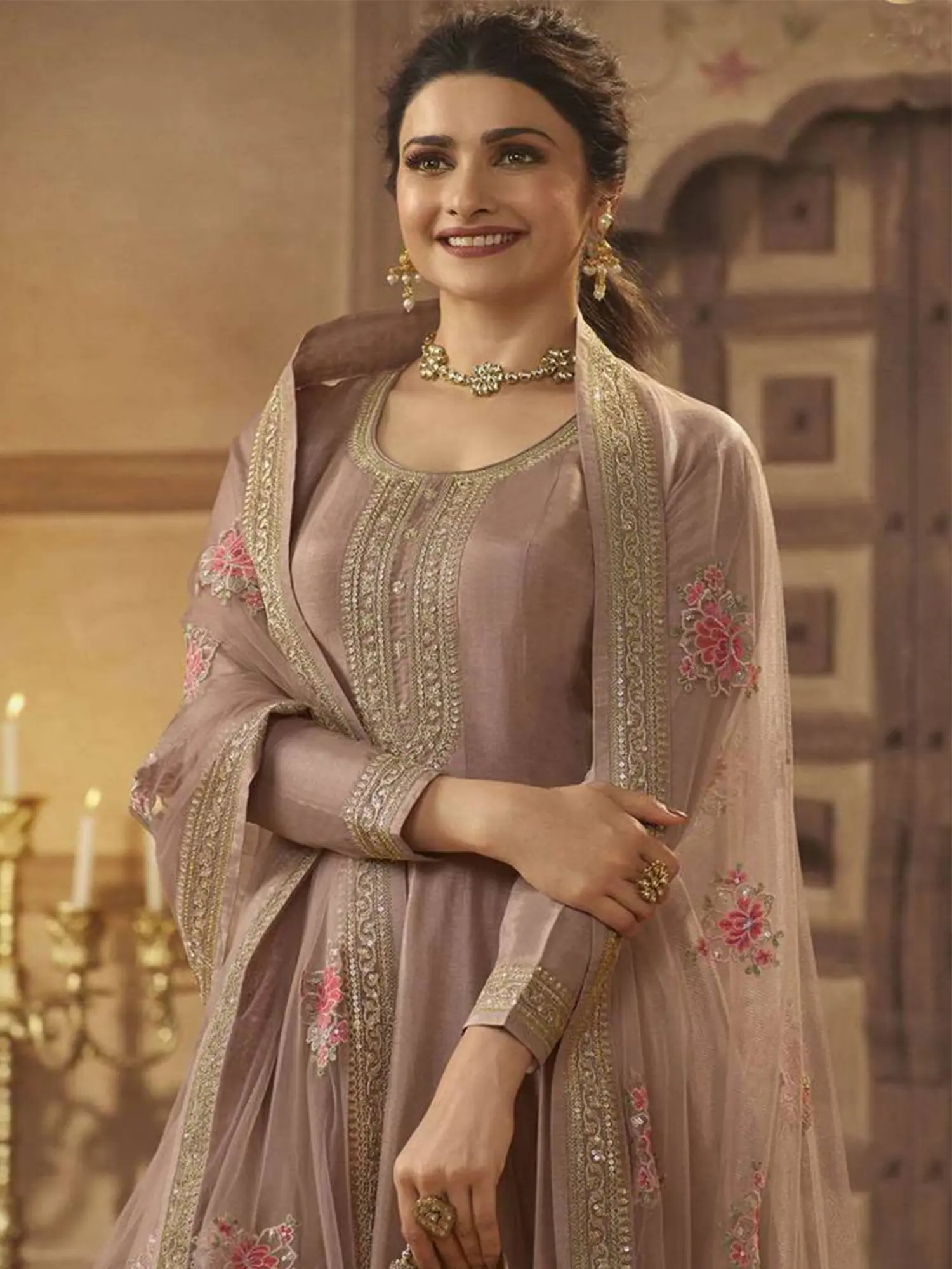 Elegant Contrast Digital Print Soft Dola Silk Festive Wear Anarkali Gown With Chinon Dupatta