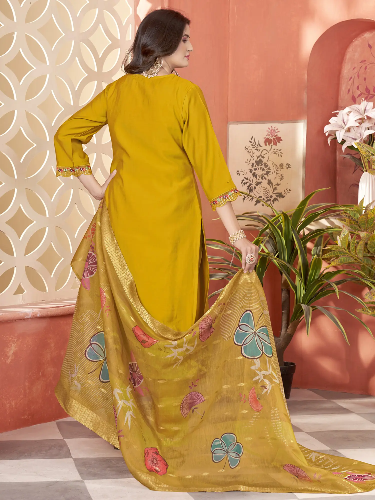 Attractive Sequins Work Viscose Silk Festive Wear Kurta Set With Printed Traditional Dupatta