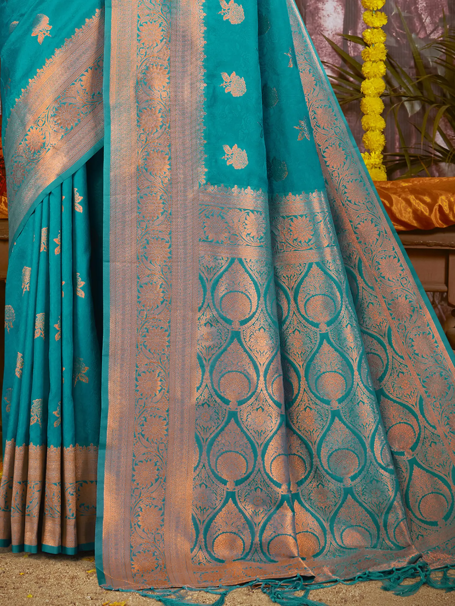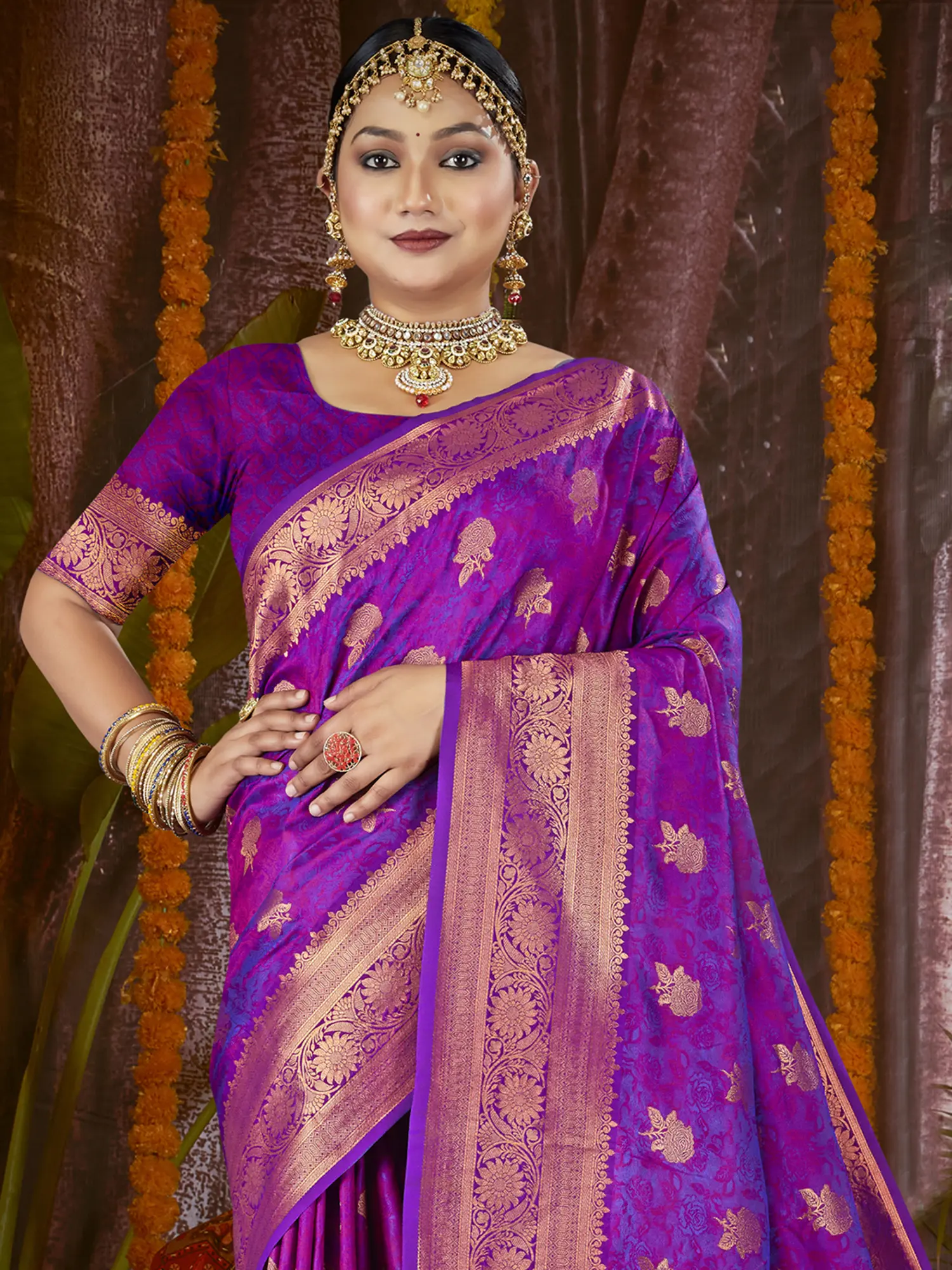 Silk Saree with Zari-Woven Border and Geometric Motifs All-Over