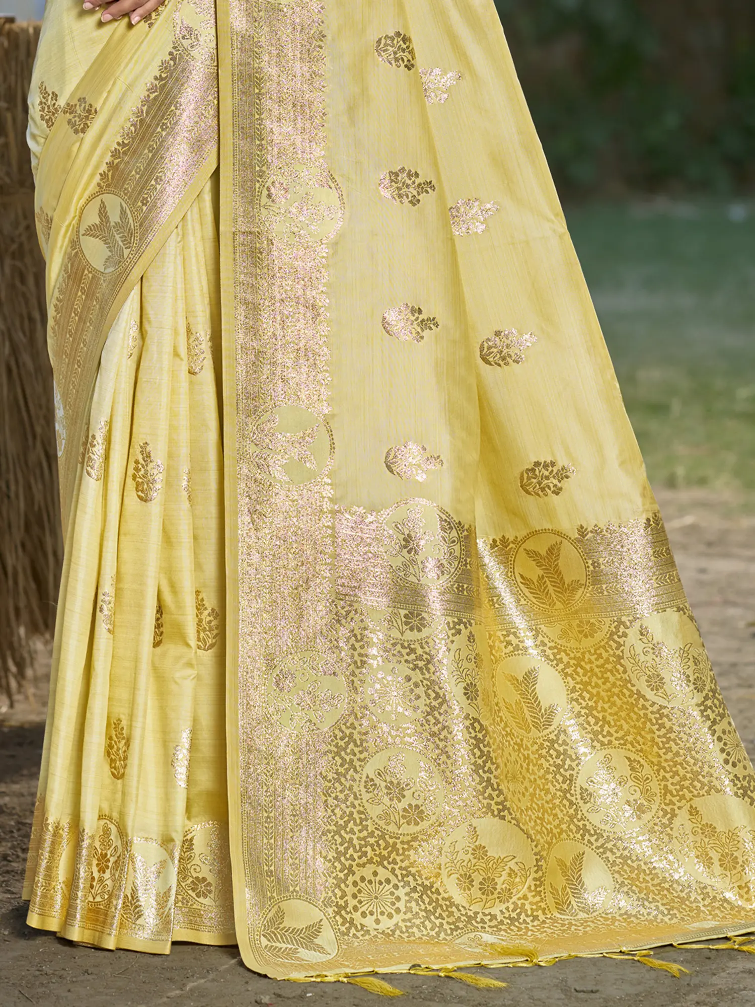 Traditional Brocaded Sari from Banaras with Woven Bootis and Floral Border
