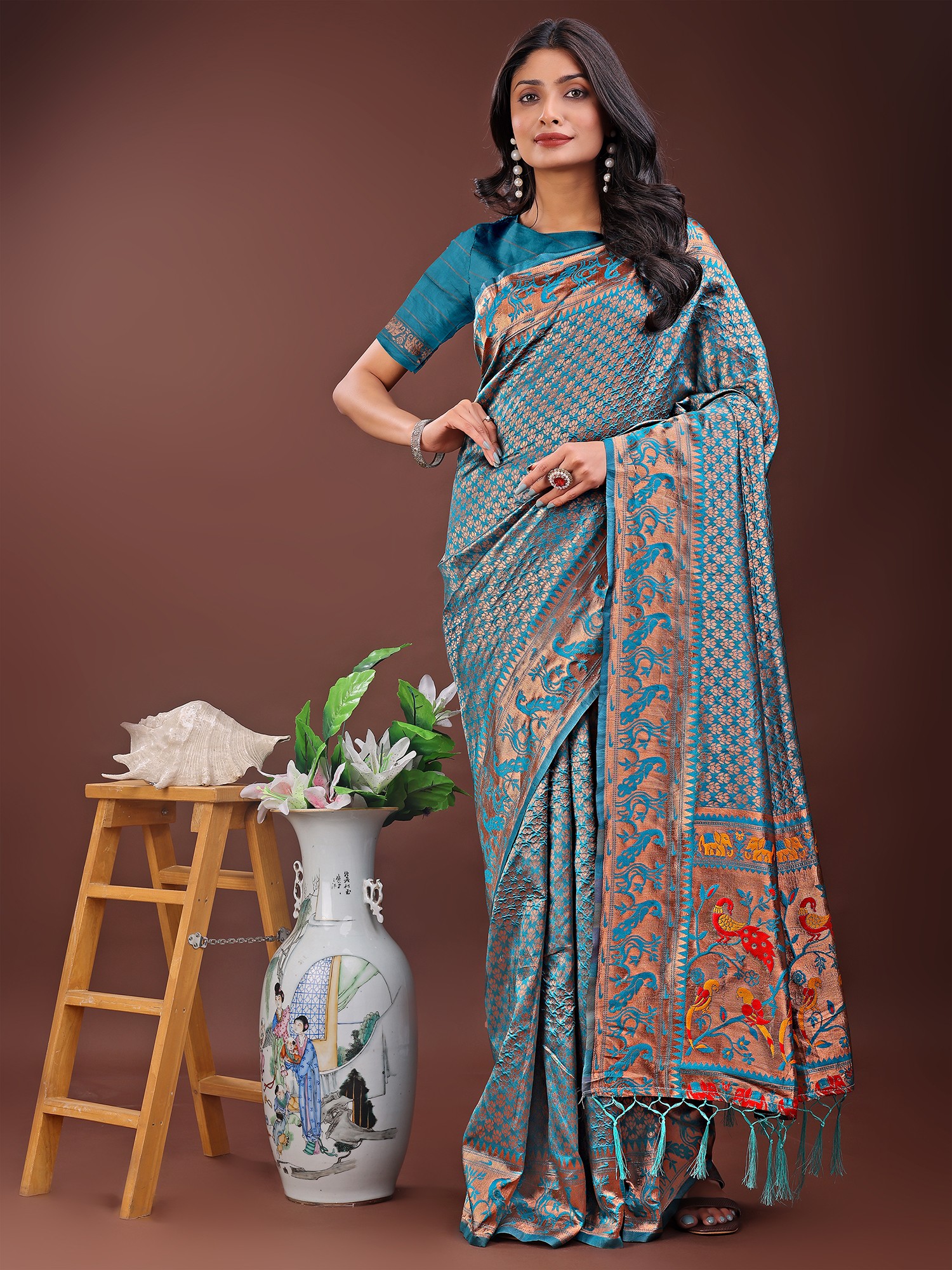 Sequins Weaving Silk Saree with Digital Print Blouse