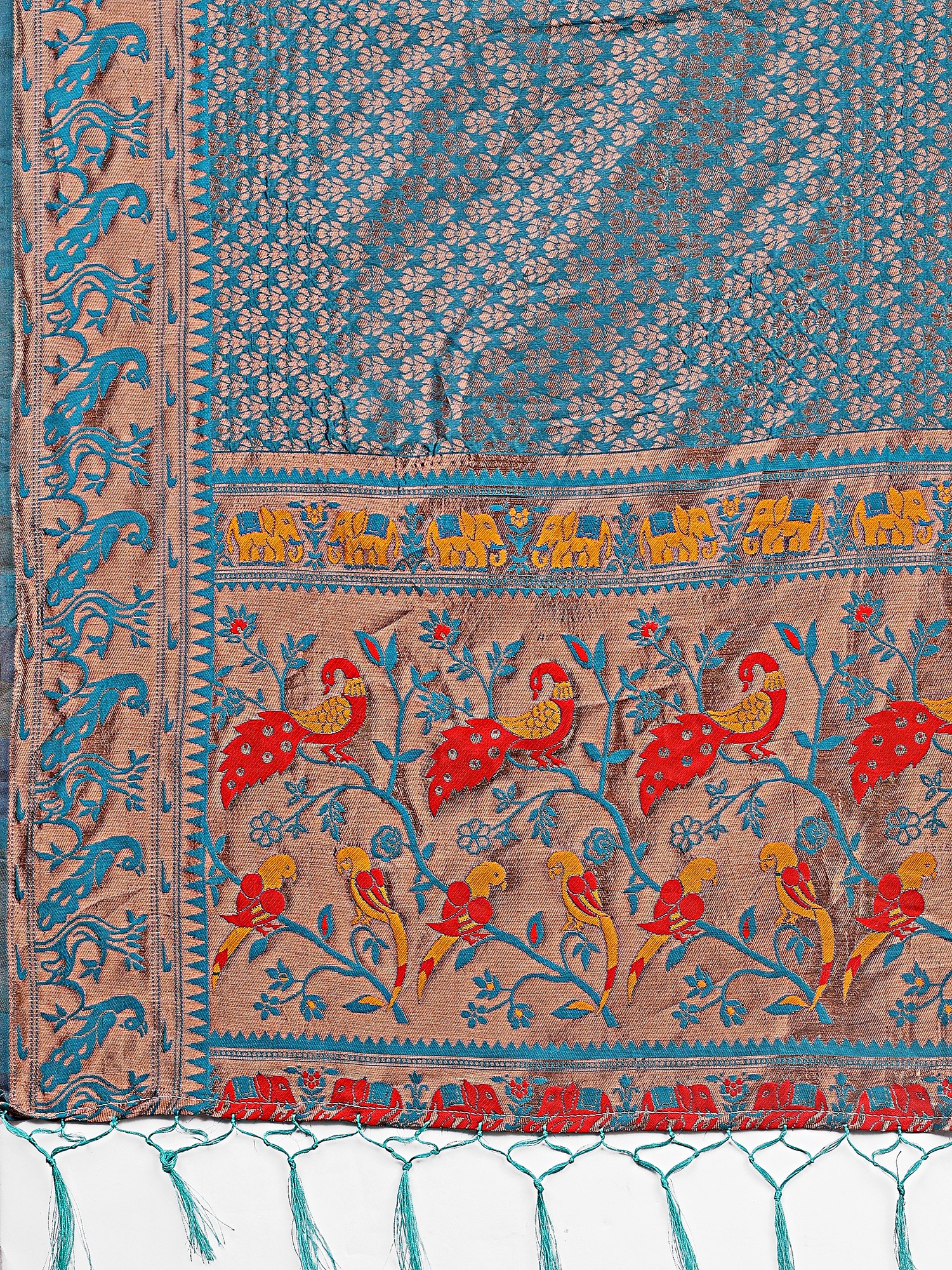 Paithani Silk Saree with Hand-Woven Peacocks on Border and Aanchal