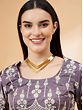 Purple Banarasi Katan Georgette Fabric with Paisleys Woven in Circular Bootis