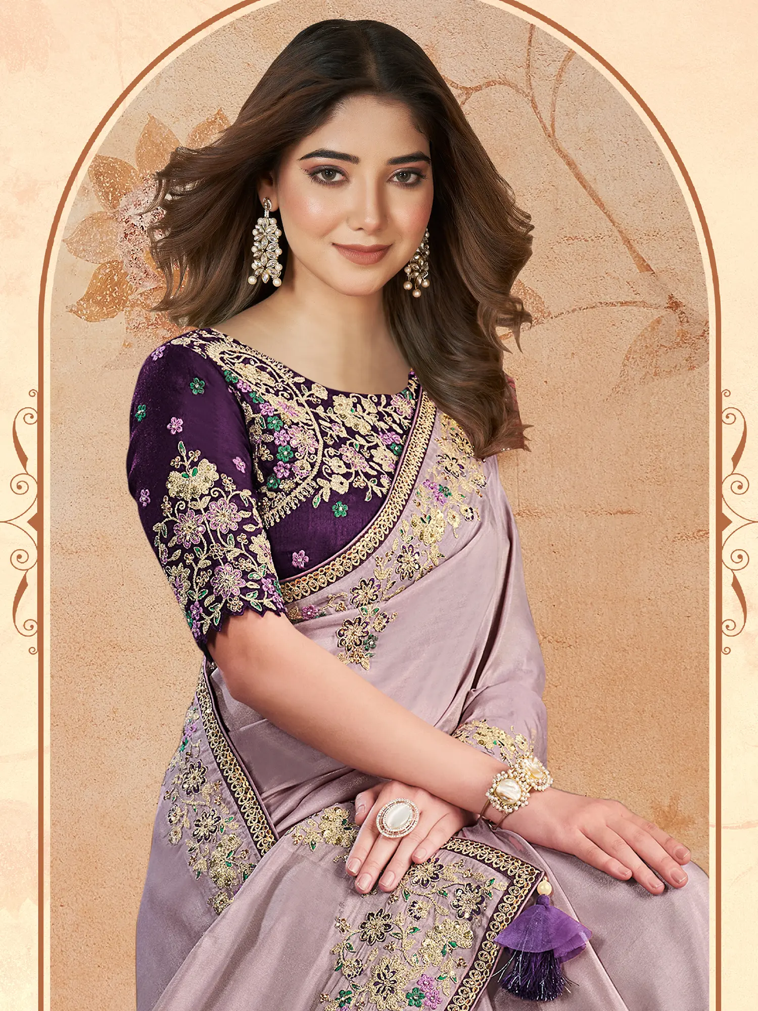 Dual Shade Pure Silk Saree with Golden Zari Woven Peacock-Elephant Motif Broad Border and Bold Aamra Motif on Pallu