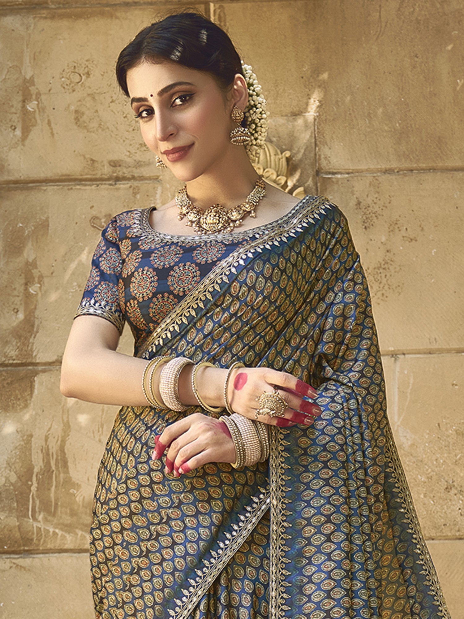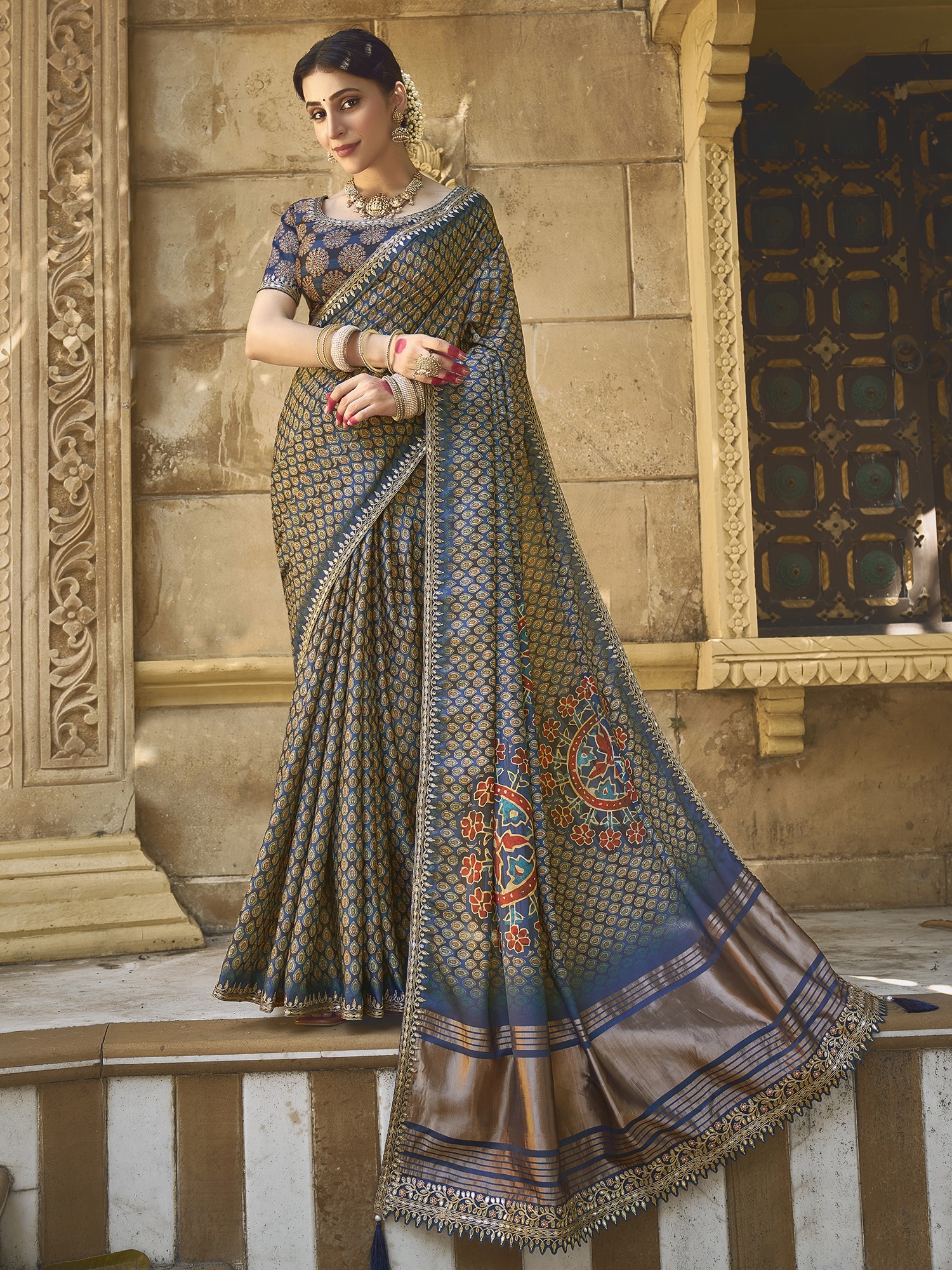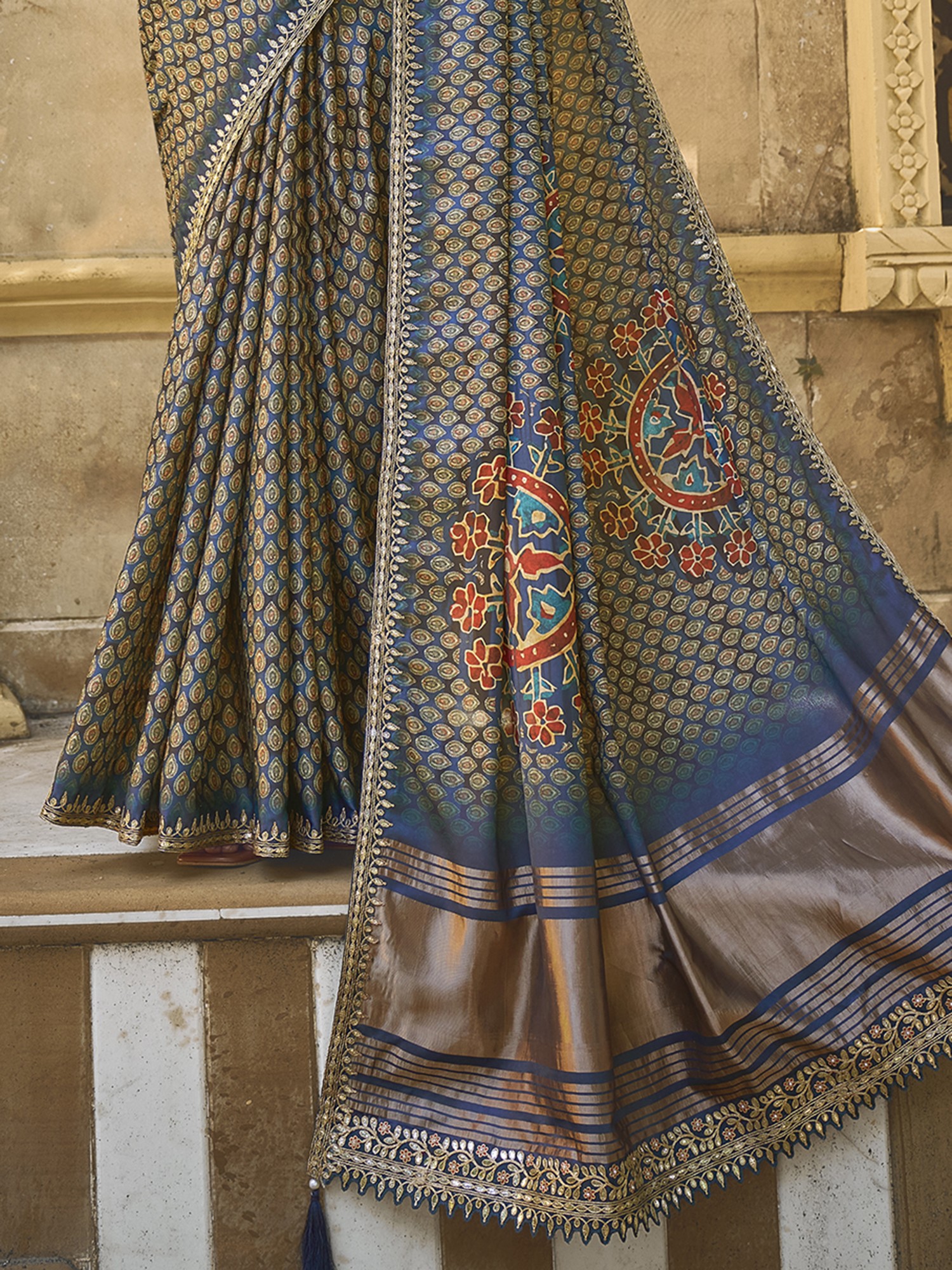 Silk Gota With Handwork Designer Saree With Blouse & Tassels Pallu For Casual Occasion