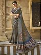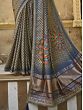 Lilac-Gray Saree with All-Over Floral Print and Tasseled Pallu