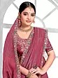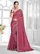 Rose-Pink Hand Embroidery Work Border Solid Designer Festive Wear Satin Silk Saree