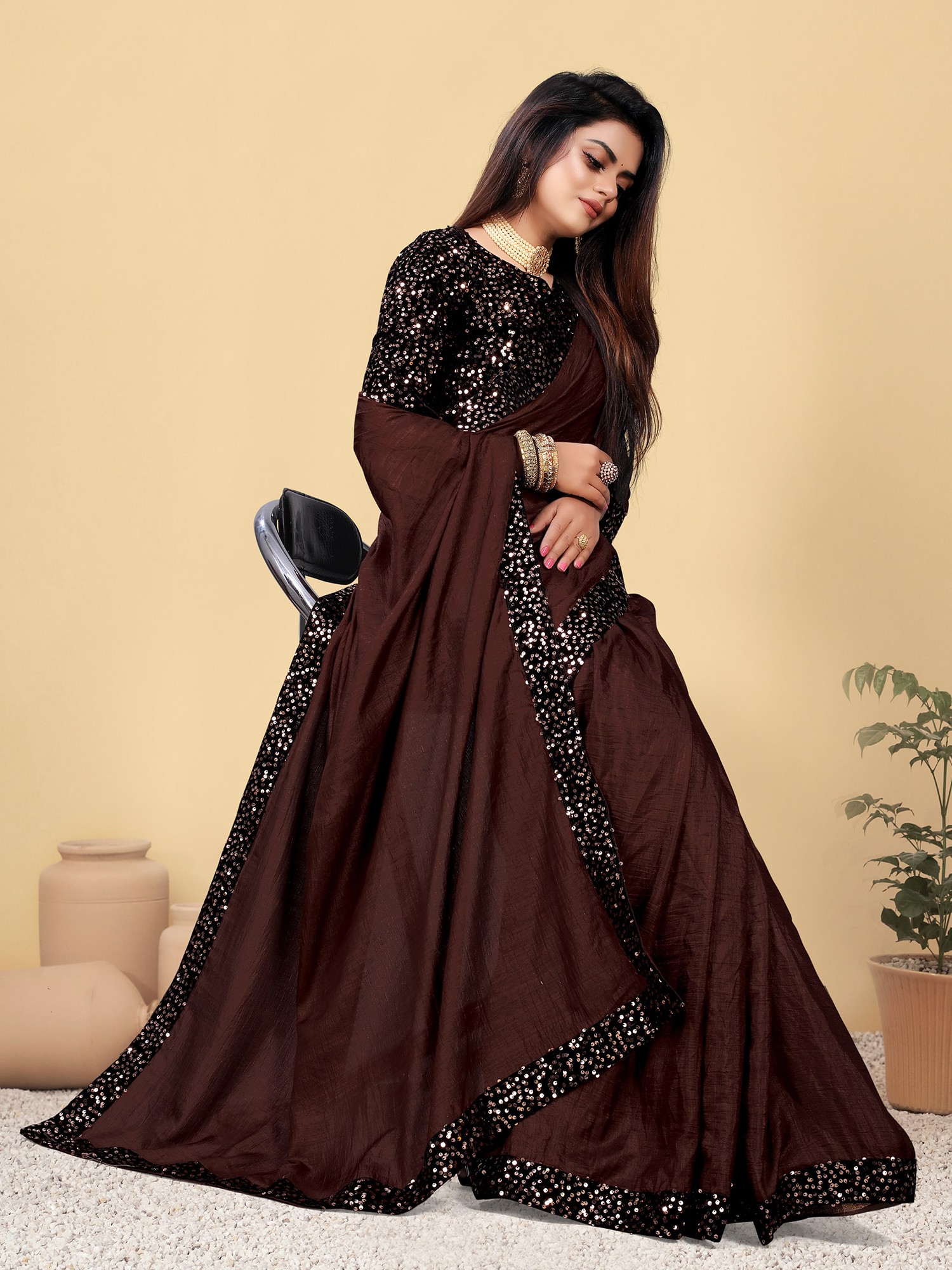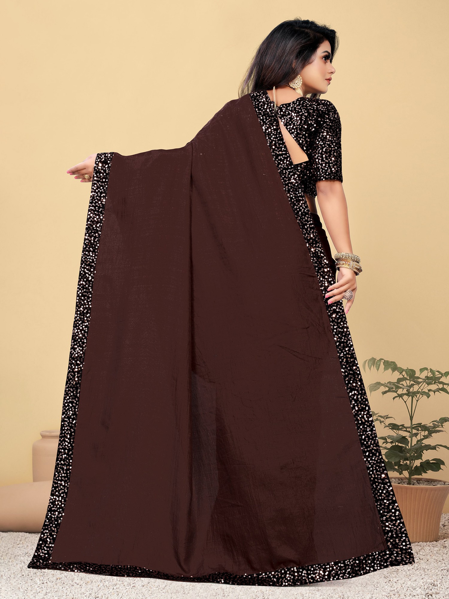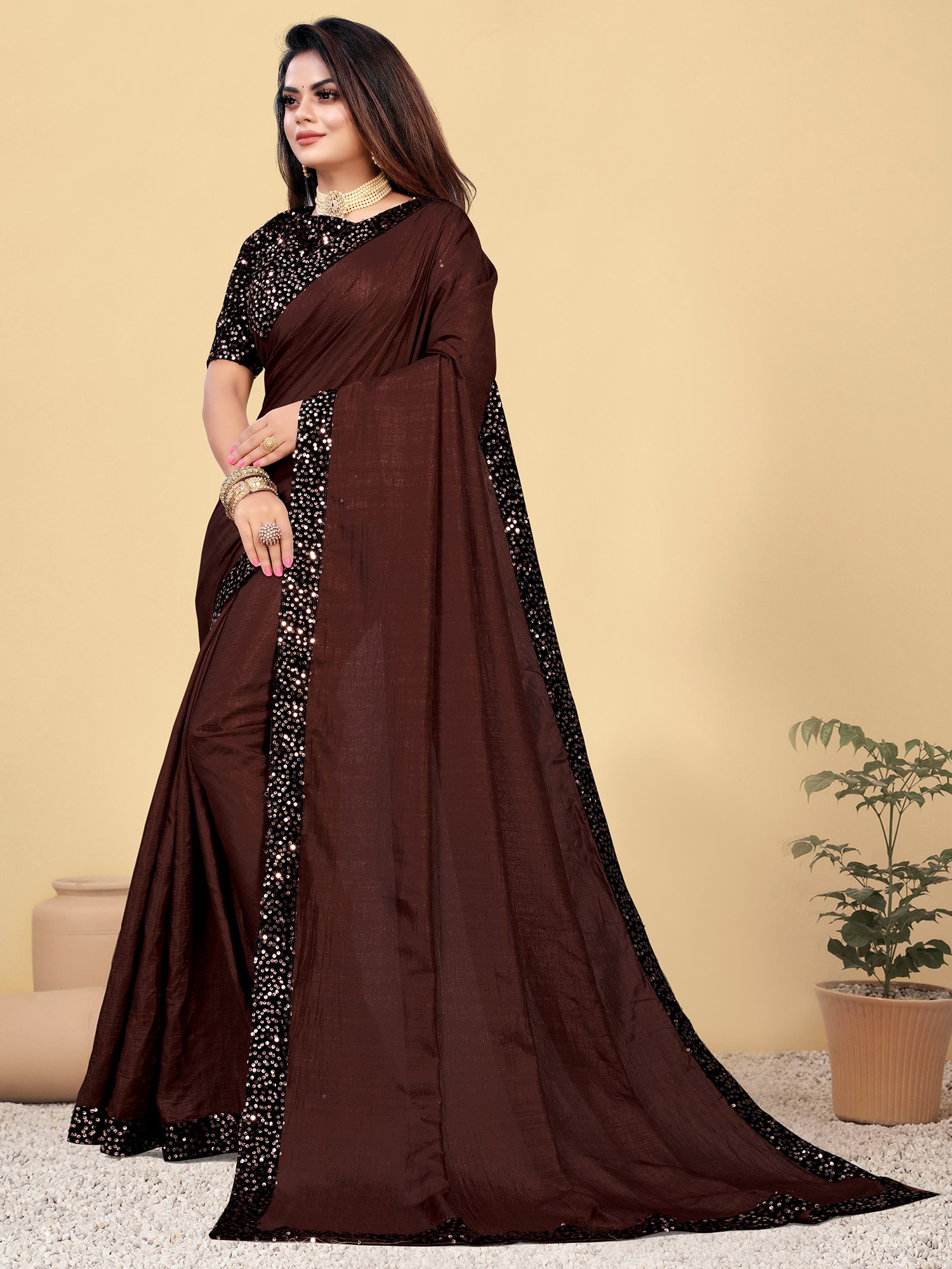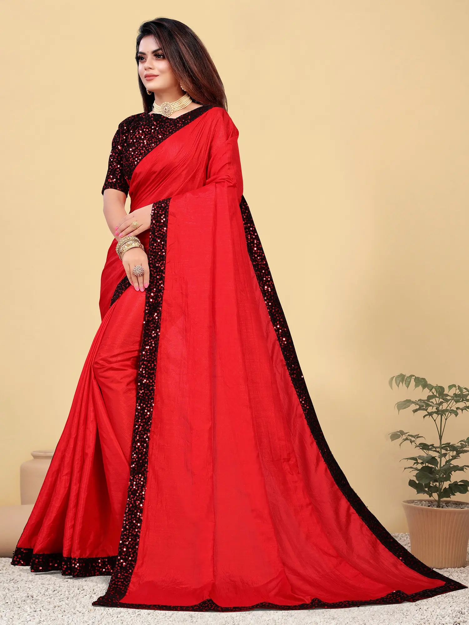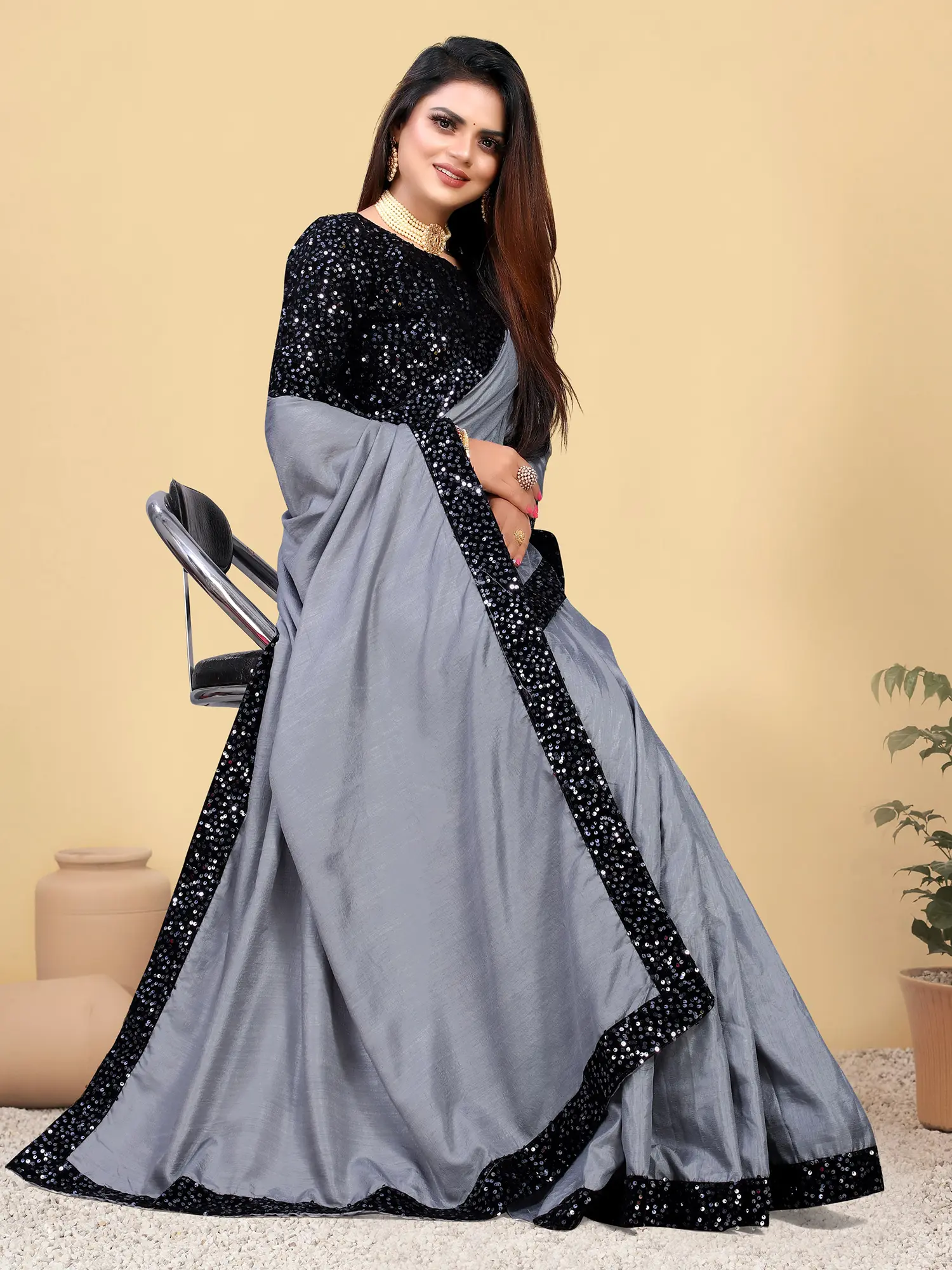 Understanding that true elegance extends beyond appearance, this saree is designed with your comfort in mind. The silk fabric feels soft and smooth against the skin, allowing for ease of movement throughout the event. The lightweight nature of the silk ensures you can wear it for extended periods without discomfort. Furthermore, the blouse and underskirt are tailored to your individual size, guaranteeing a perfect and flattering fit. This attention to detail ensures that the saree not only looks spectacular but also feels incredible to wear, allowing you to fully enjoy your special moments with confidence and grace. Embrace the blend of exquisite design, radiant embellishments, and personalized comfort with this stunning party wear saree.