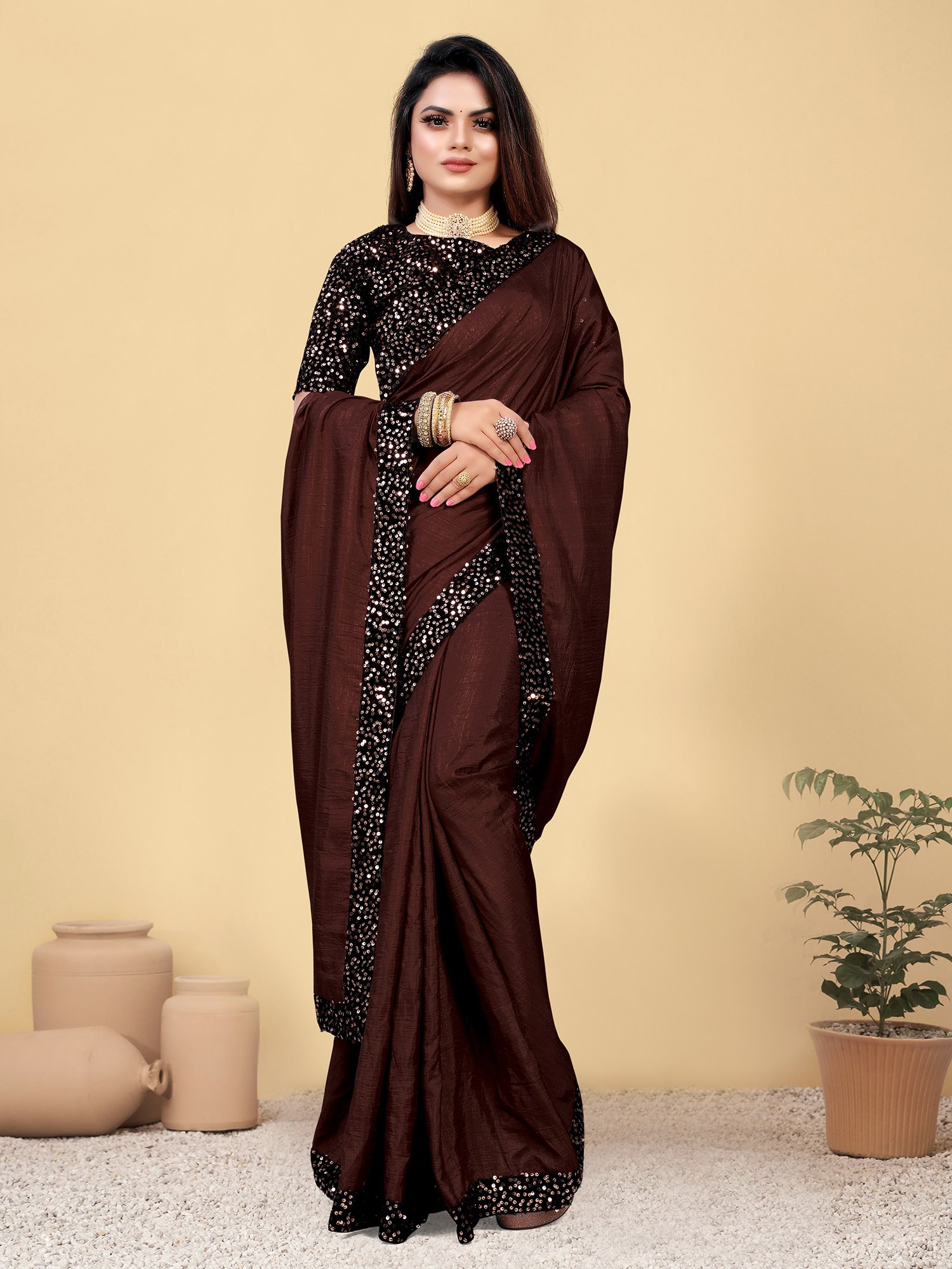 Sequins Weaving Silk Saree with Digital Print Blouse