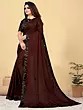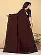 Sepia and Green Designer Saree with Sequins Embroidered as Flowers and Peacock Patch Border
