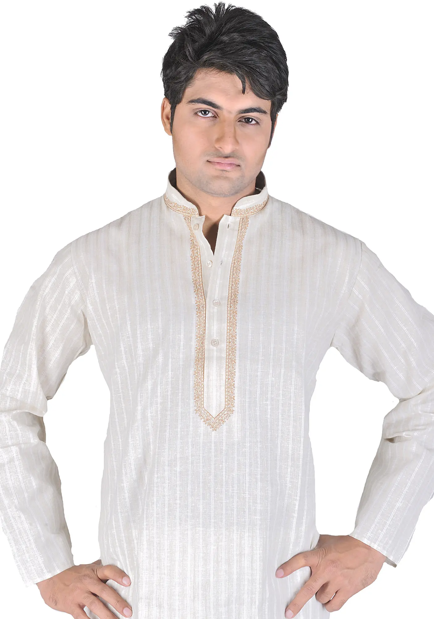 This “Silver-Gray Kurta Pajama” is a stunning combination of traditional and modern elegance that will enhance your ethnic charm. It is ideal for festive celebrations or cultural gatherings since it is made of pure cotton and provides unmatched comfort. The beautiful workmanship of the hand-embroidered flowers embellishing the neckline adds a sophisticated touch to any look. This outfit represents everlasting class and cultural pride and is more than simply a piece of apparel. Enjoy the breathtaking richness of pure cotton and immerse yourself in the allure of tradition.