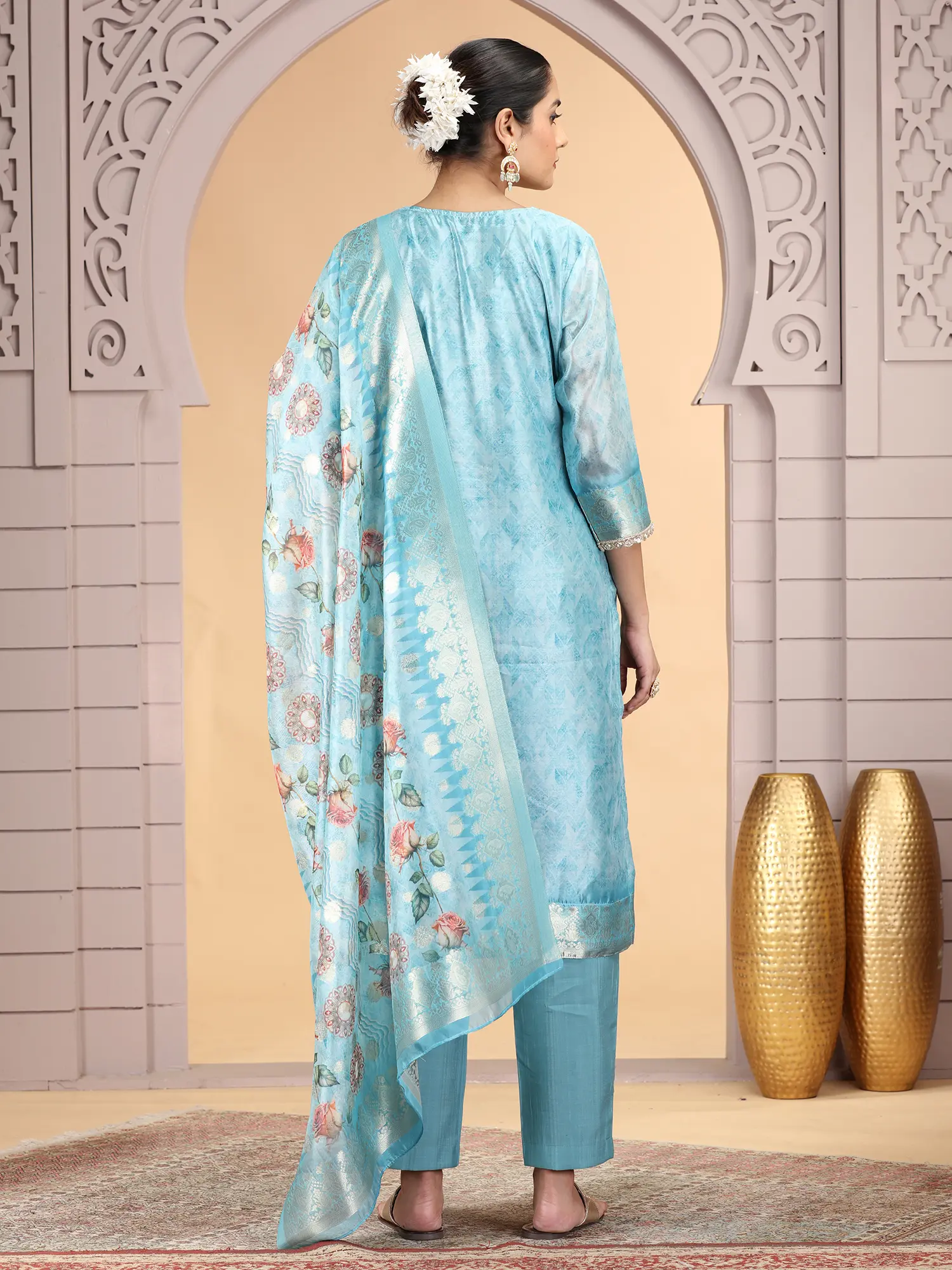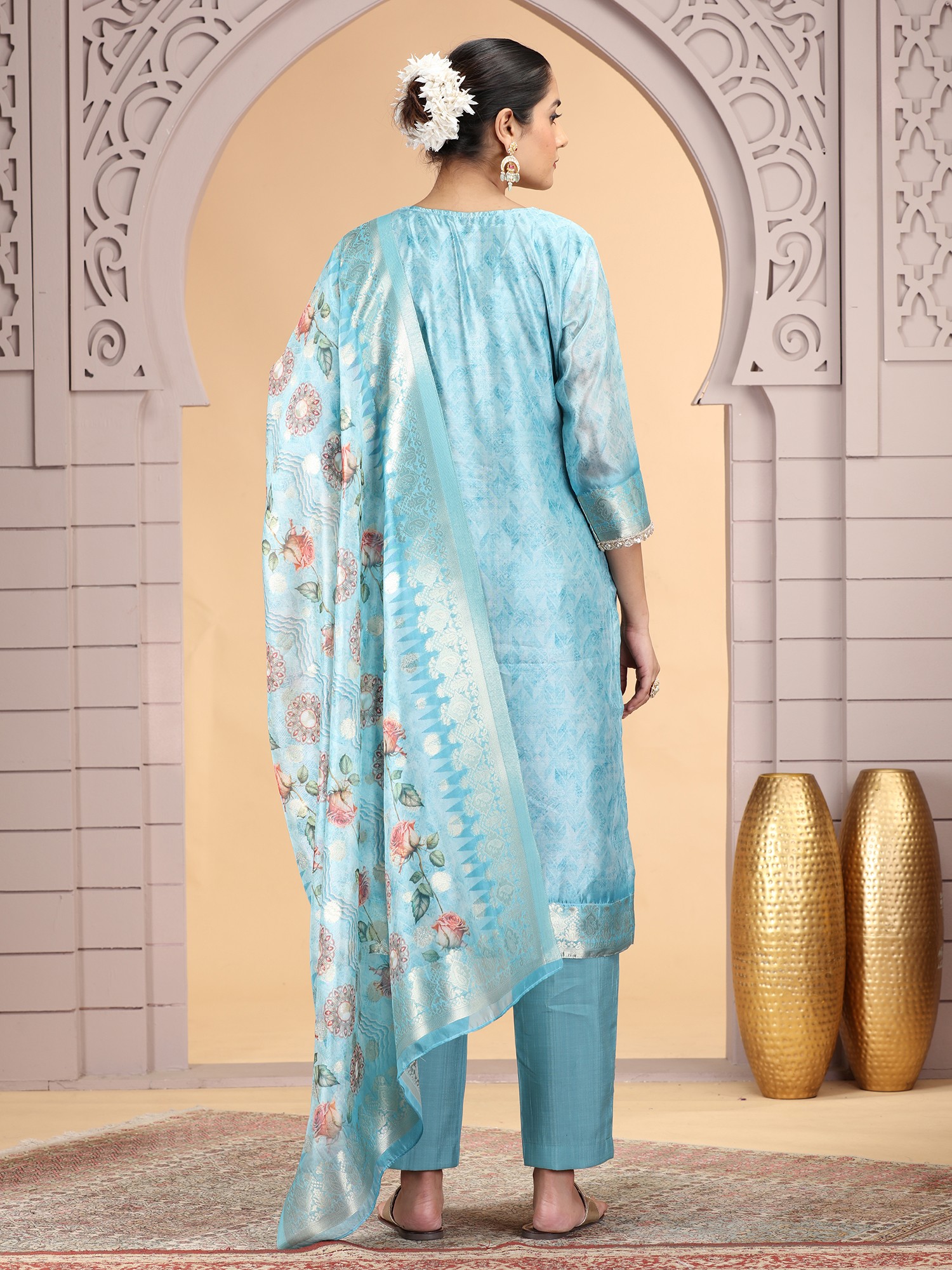 Vichitra Silk Embroidered Sequins And Zari Work Designer Salwar Suit With Matching Dupatta