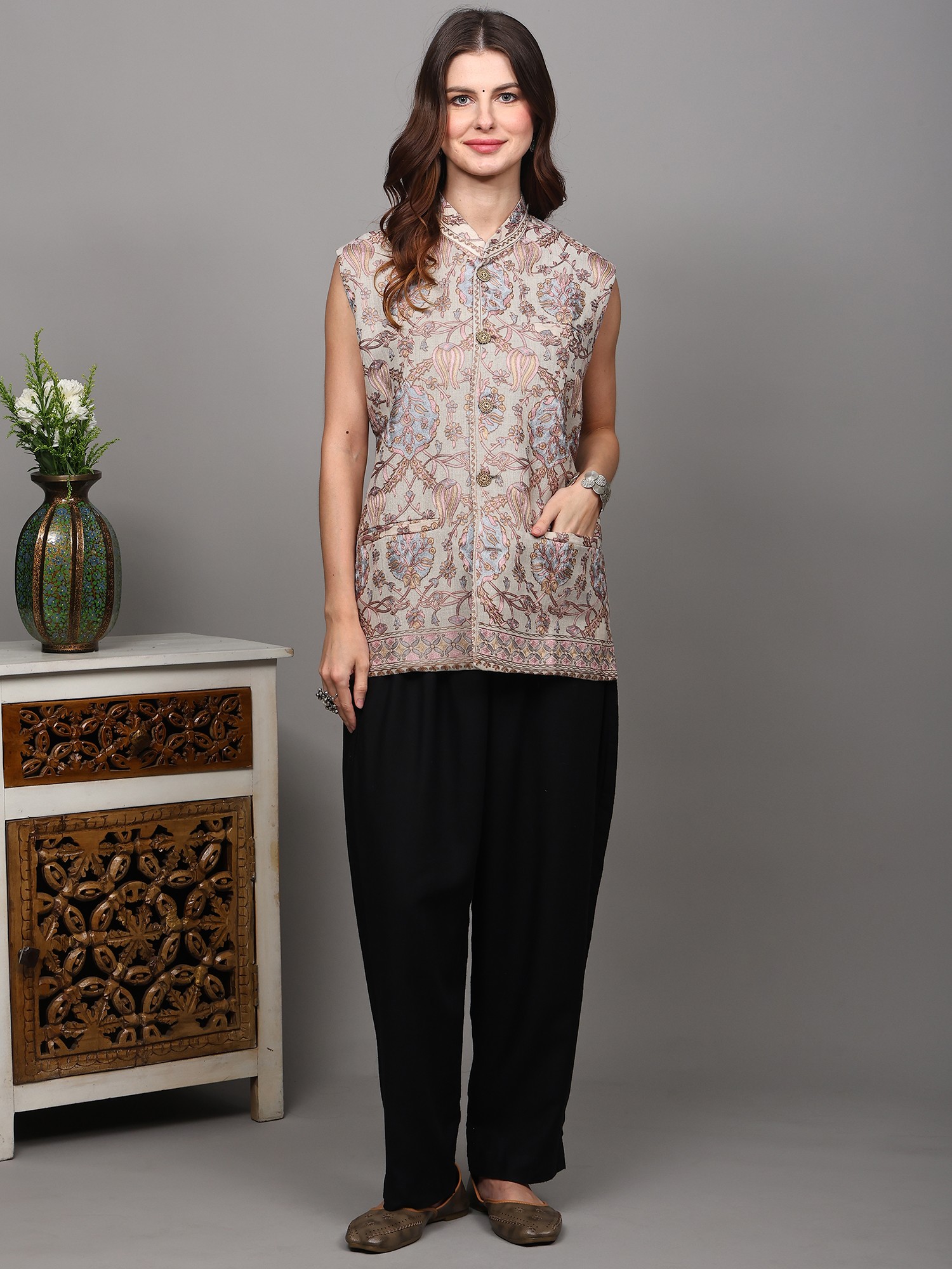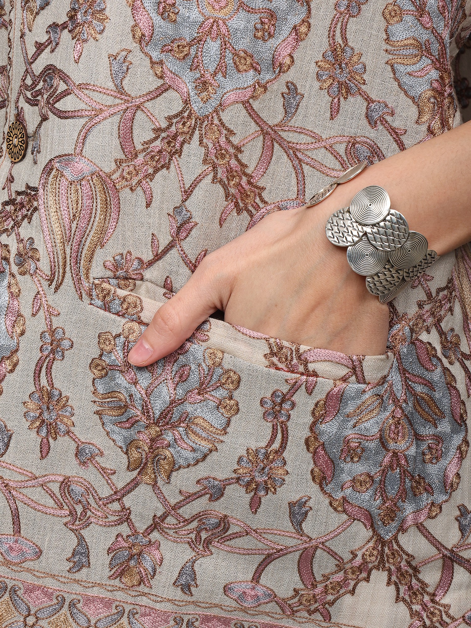 Creme-Brulee Kani Short Jacket with Woven Paiselys-Flowers and Side Pockets