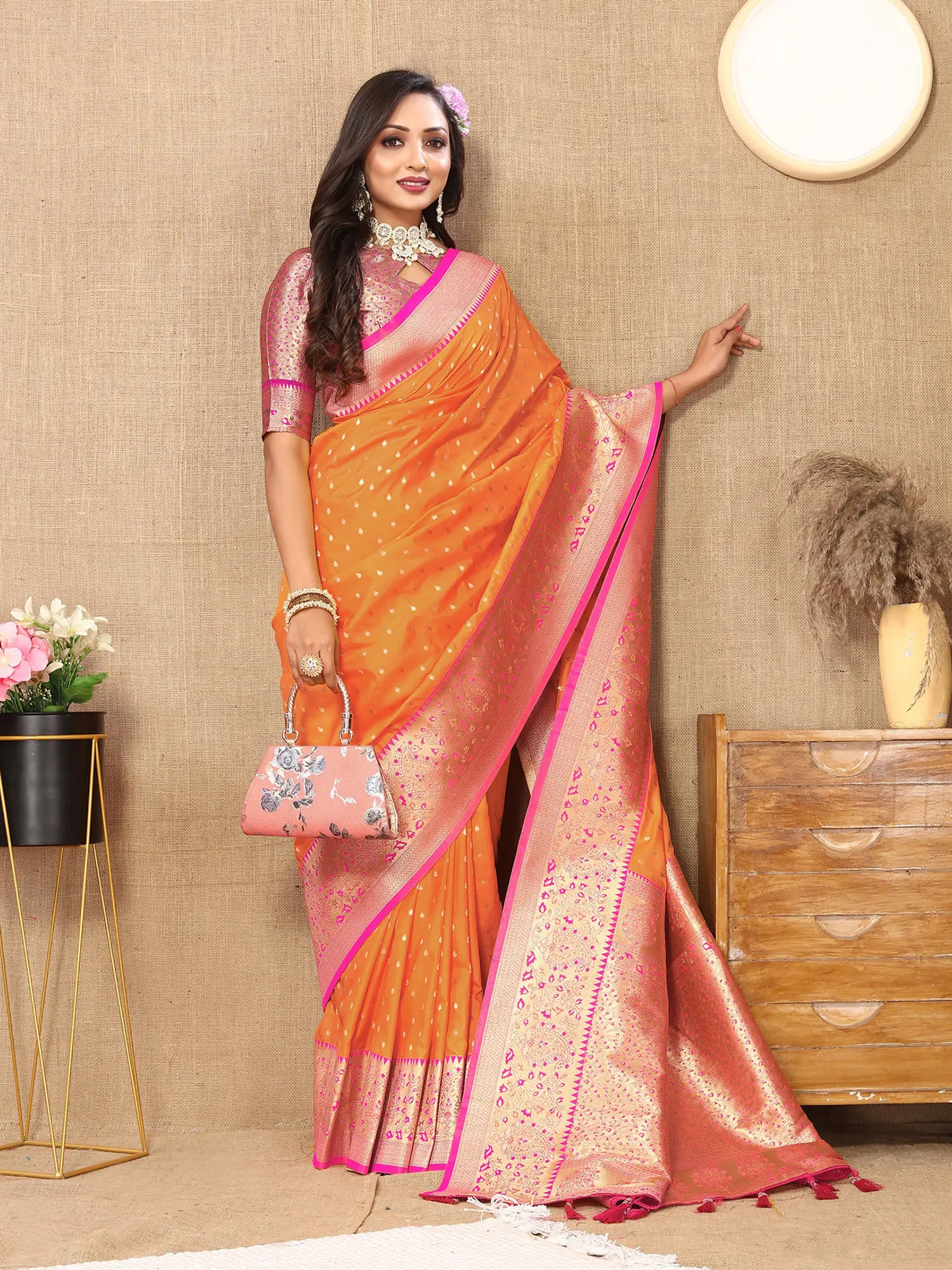 Hazelnut Sari from Assam with Woven Motifs on Anchal
