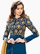 Snorkel-Blue and Golden Designer Lehenga Suit with Floral-Embroidery in Zari Thread and Crystals