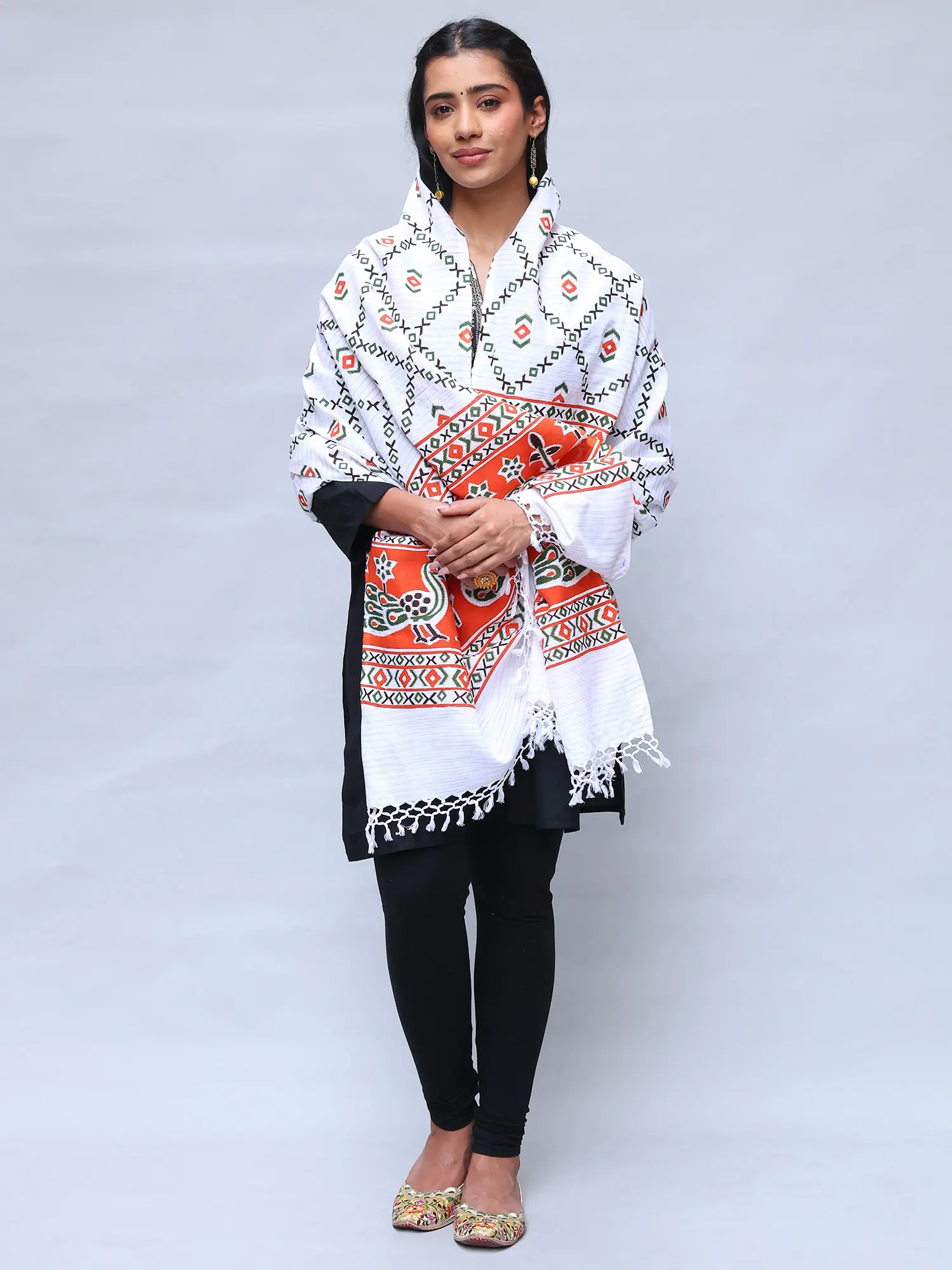 Karanda-Red Cotton Kalamkari Dupatta with Hand-Painted Makhan Chor Krishna