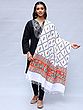 Imperial-Blue Khadi Cotton Kalamkari Dupatta with Kathak Hand Mudras