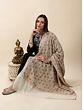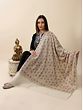 Like a canvas painted with dreams, the Snow-White Pashmina Shawl unfolds the magic of Sozni embroidery. The Jaaldaar tracery pattern, painstakingly hand-embroidered, transforms pure pashmina into a masterpiece. Originating in the valleys of Kashmir, Pashmina is famed for its rarity and natural warmth. The shawl, a tribute to artistry and luxury, envelopes its wearer in a tapestry of elegance. As history unfurls in each stitch, this shawl whispers tales of love for craftsmanship and respect for heritage. Its softness and beauty, are a testament to a timeless connection between art and the heart.