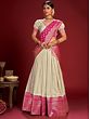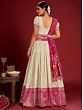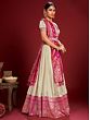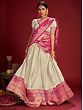 Snow-White Jacquard Silk Floral Pattern Designer Lehenga Choli With All-Over Zari Waveing And Pink Dupatta