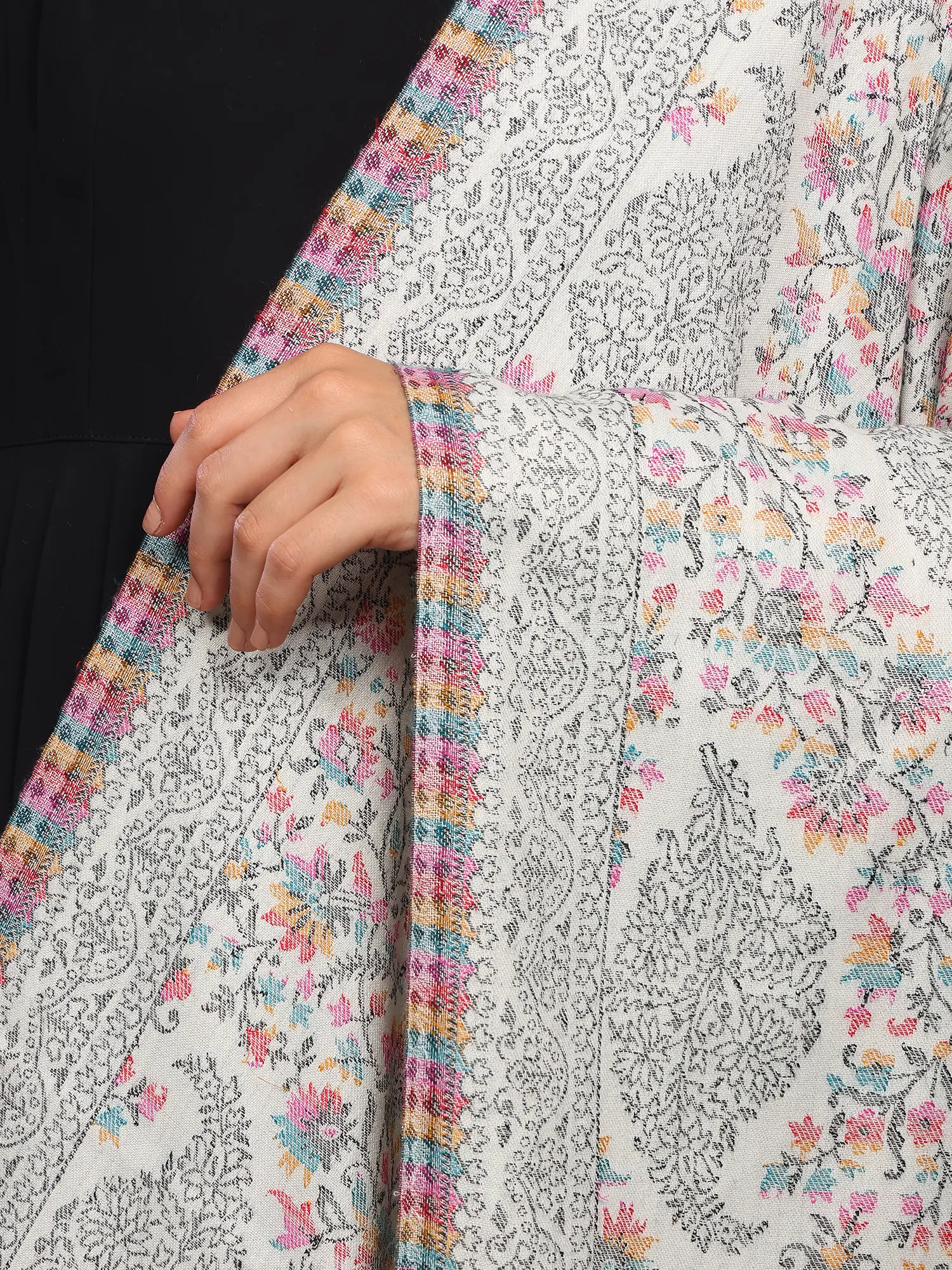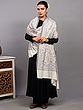 Star-White Jamawar Shawl with Woven Floral Leaves Jaal from Punjab