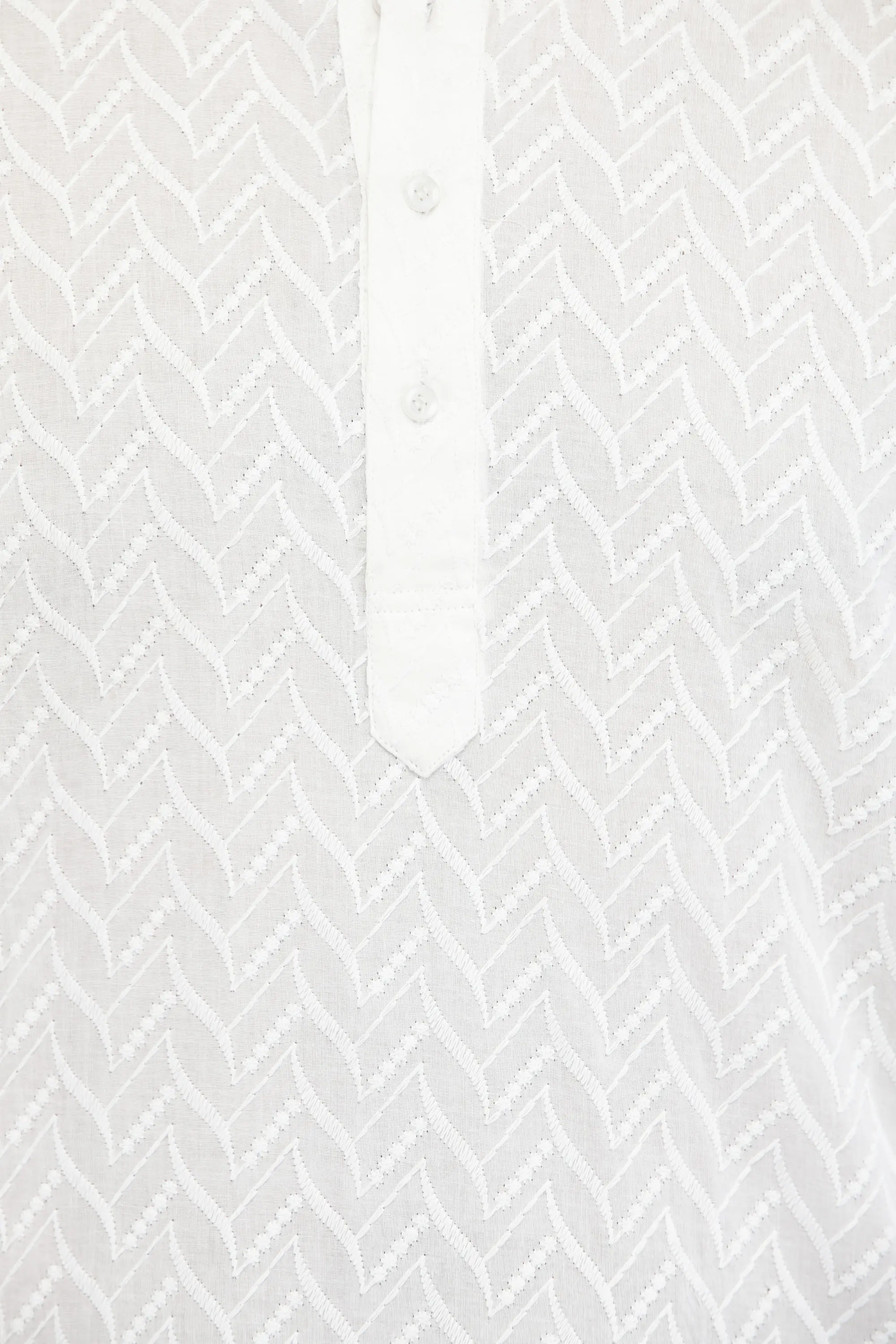 Candlelight-Peach Lukhnavi Chikan Sari with Floral Hand-Embroidery All-over