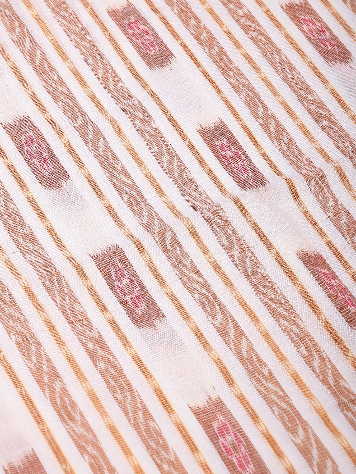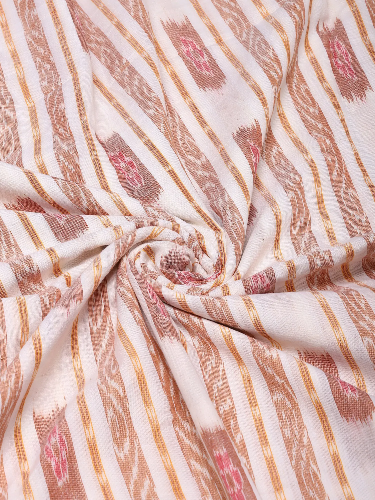 Golden-Cream Pure Cotton Fabric with All-Over Ikat Weave