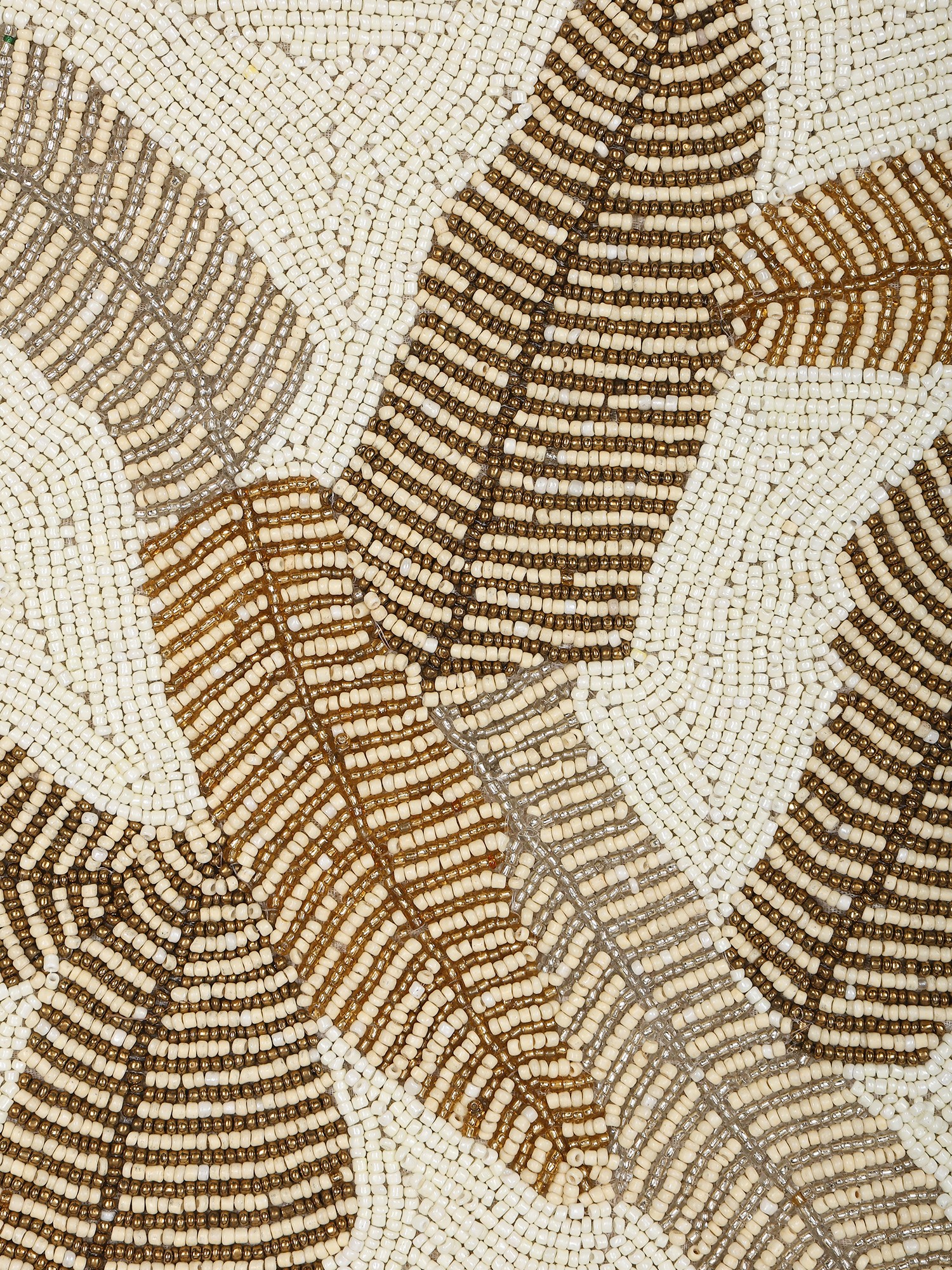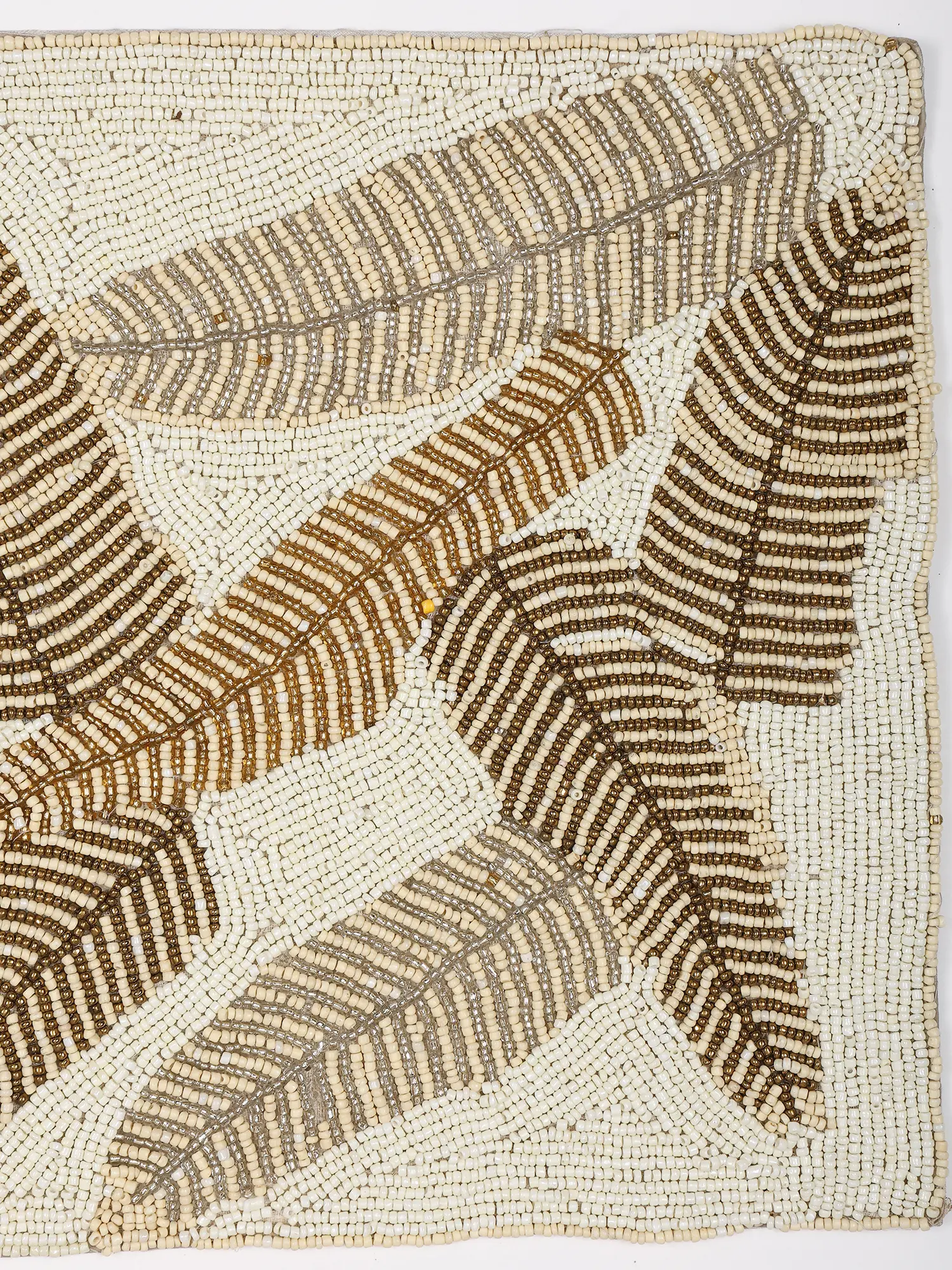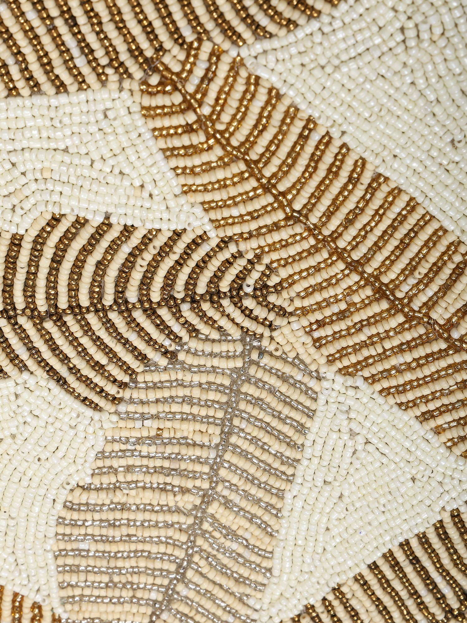 Transform your living space with this exquisite piece of artistry. More than just a decorative accent, it's a statement of sophisticated style and an appreciation for intricate craftsmanship. The delicate beadwork catches the light, creating a subtle shimmer that adds a touch of luxury to any setting. Imagine it gracing your dining table, the warm tones of the leaves contrasting beautifully with crisp white linens. Or picture it adorning a console table, adding a touch of texture and visual interest to your entryway. This handcrafted item isn't just about aesthetics; it's about the story it tells. Each bead has been carefully placed to create a stunning visual effect. The overlapping leaf pattern evokes a sense of natural beauty, bringing the outdoors in. The neutral color palette allows it to seamlessly blend with a variety of décor styles, from modern minimalist to rustic farmhouse. Whether you're hosting a formal dinner party or simply enjoying a quiet evening at home, this decorative piece will elevate your space and spark conversation.