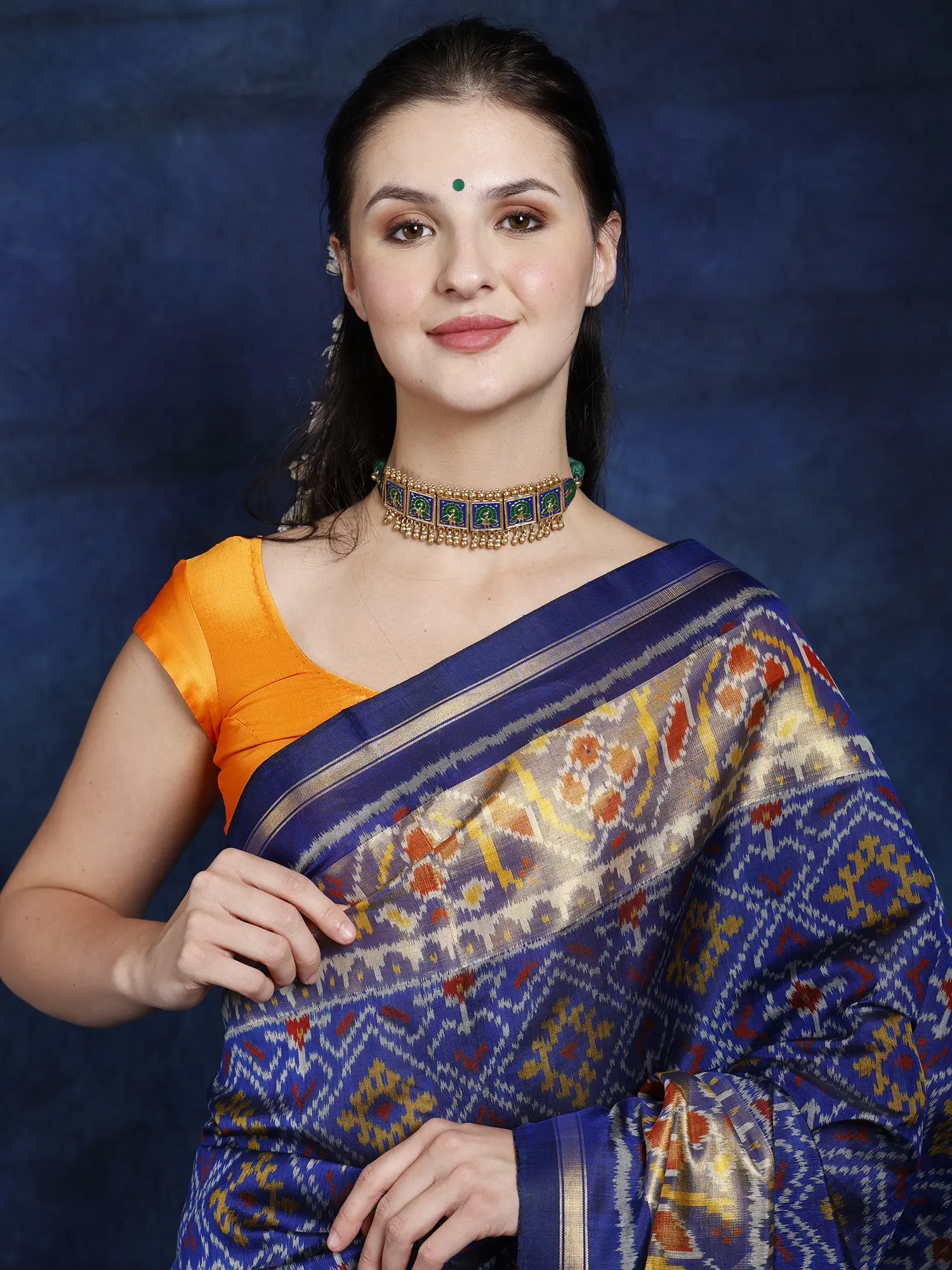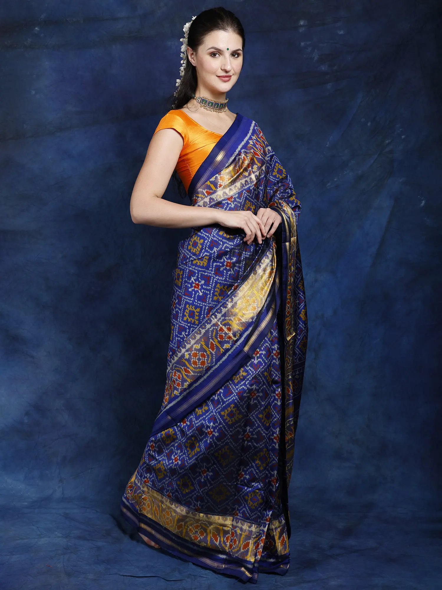 Ivory and Midnight-blue Barbie Dress with Ikat Print