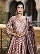 New-Wheat and Red Designer Anarkali Suit with Floral-Embroidery and Crystals