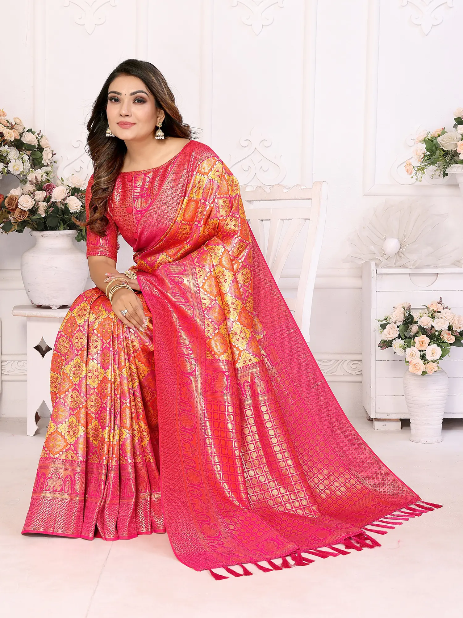 Woven Floral Motifs Attractive Silk Saree With Lotus Flower Tassels Pallu