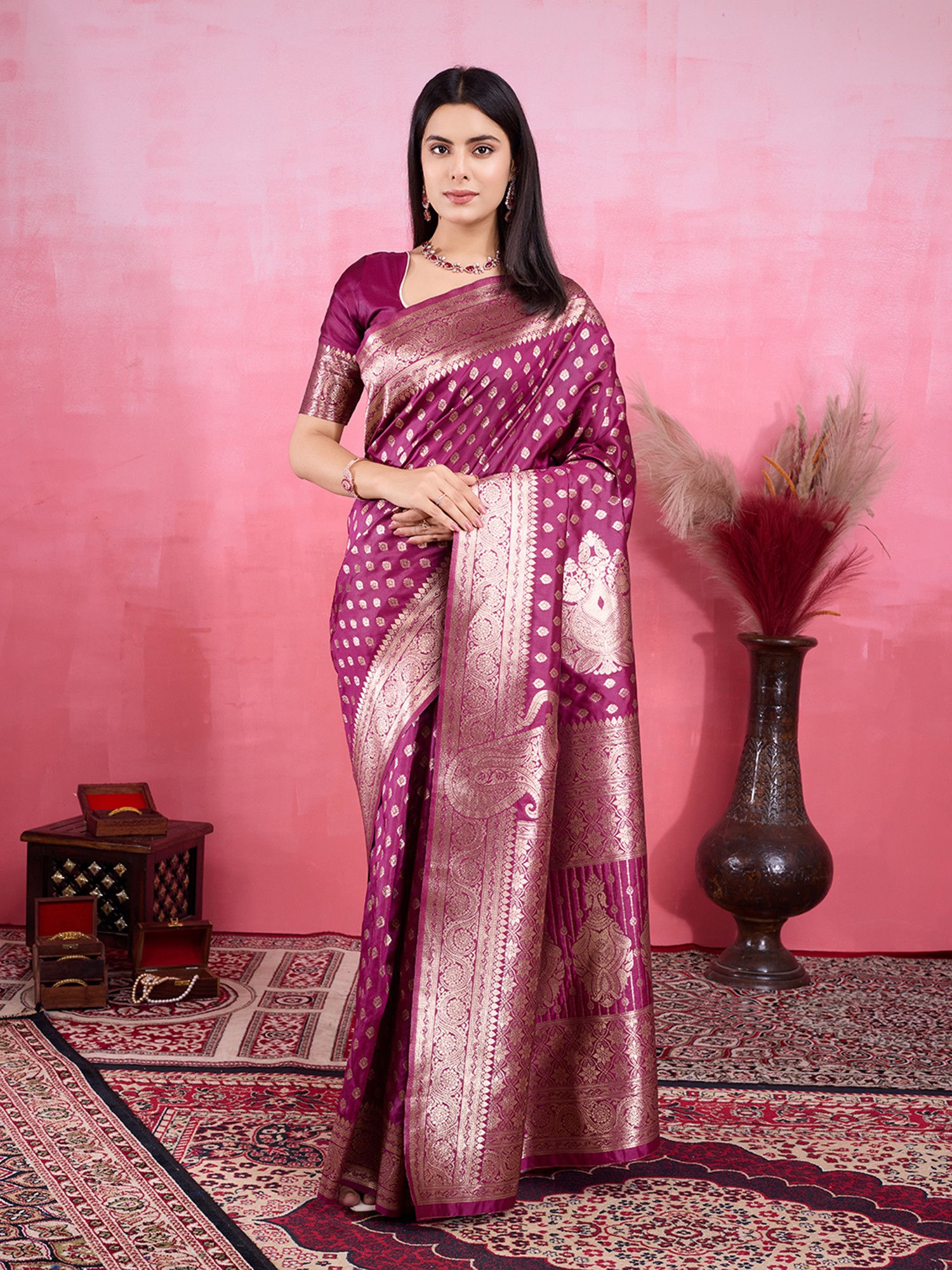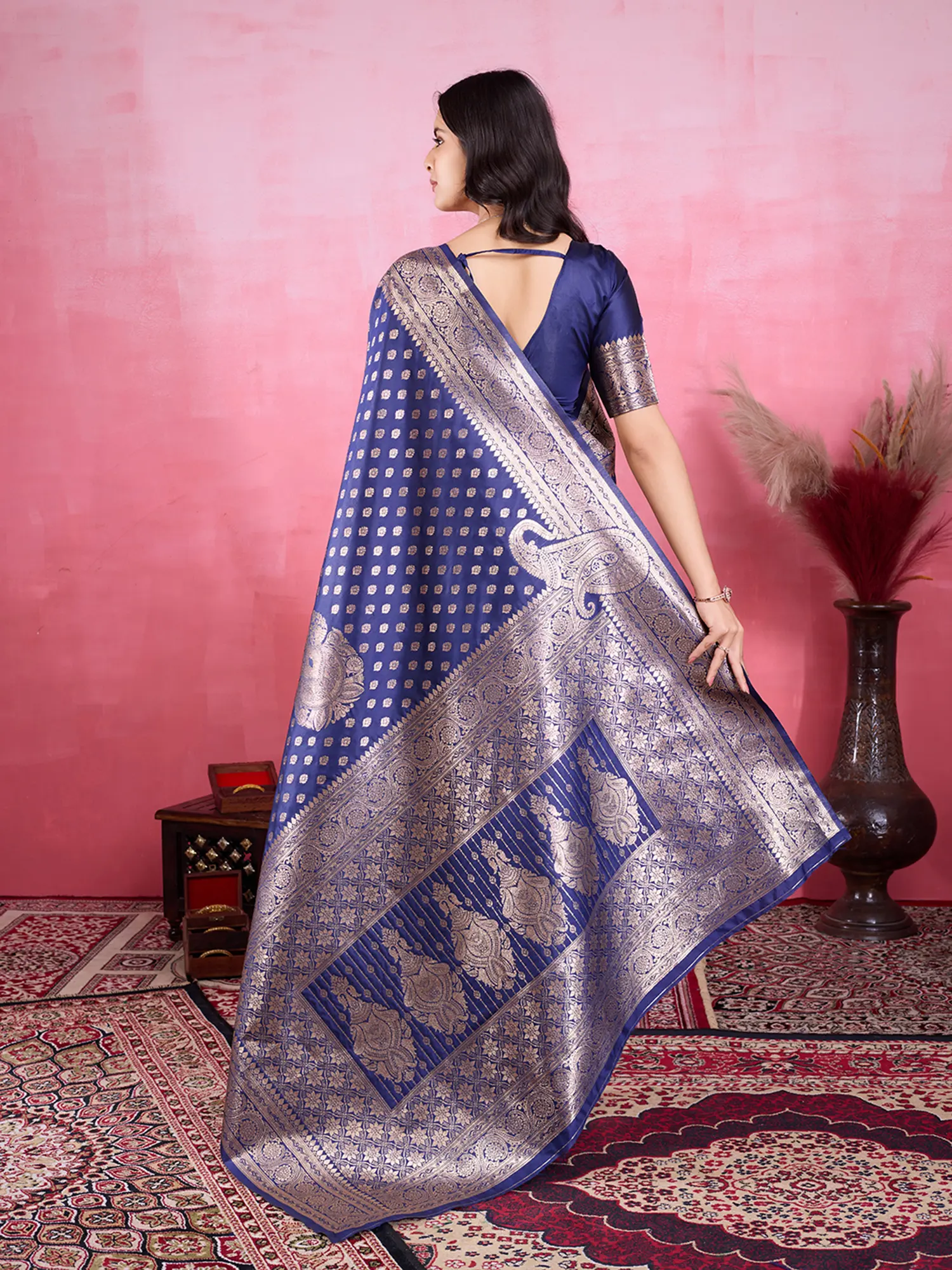 Banarasi Silk All Over Woven Zari Butti Attractive Saree With Contrast Pallu