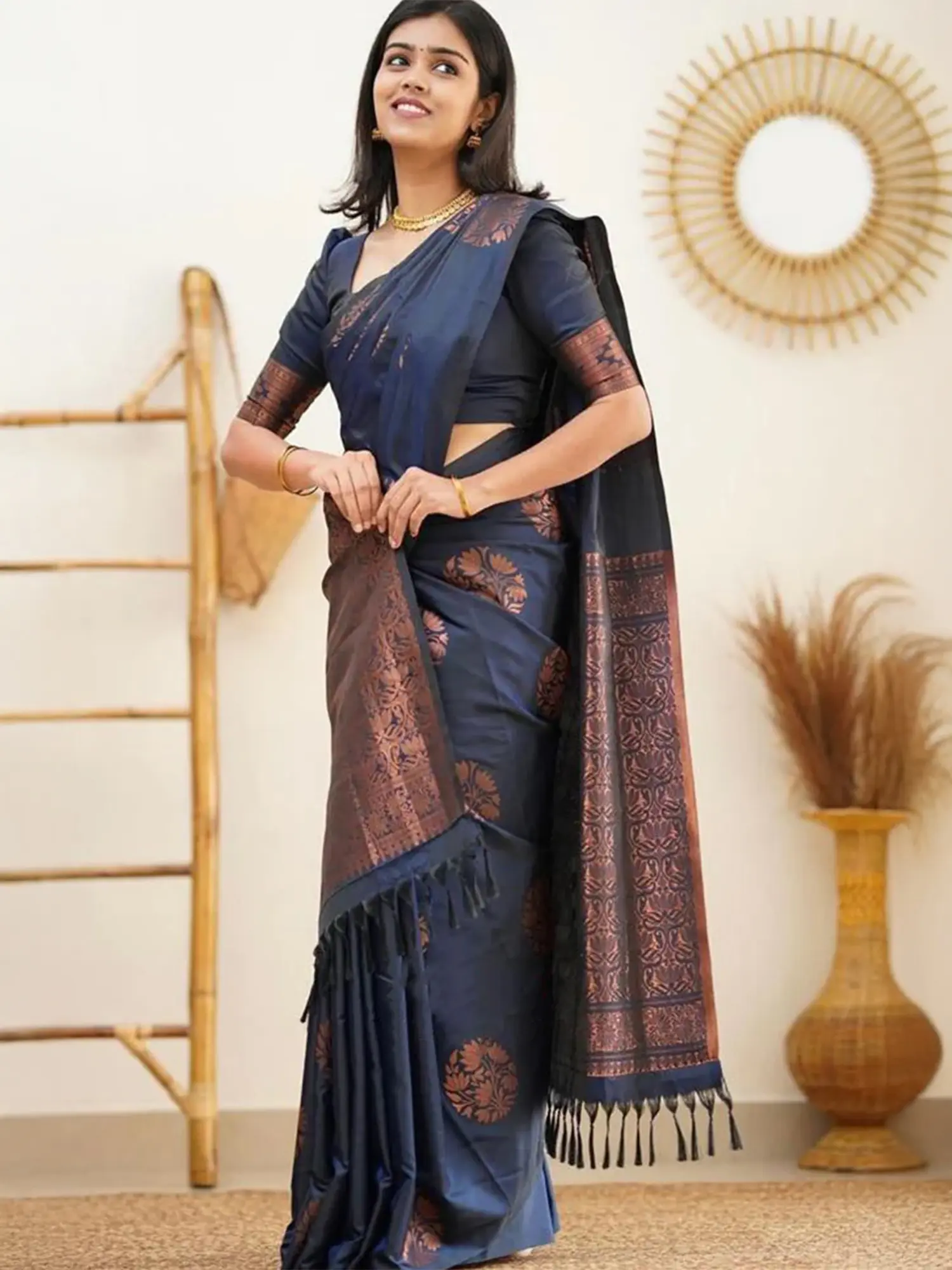 Rust Mysore Silk Sari with Giant Hand-woven Paisleys