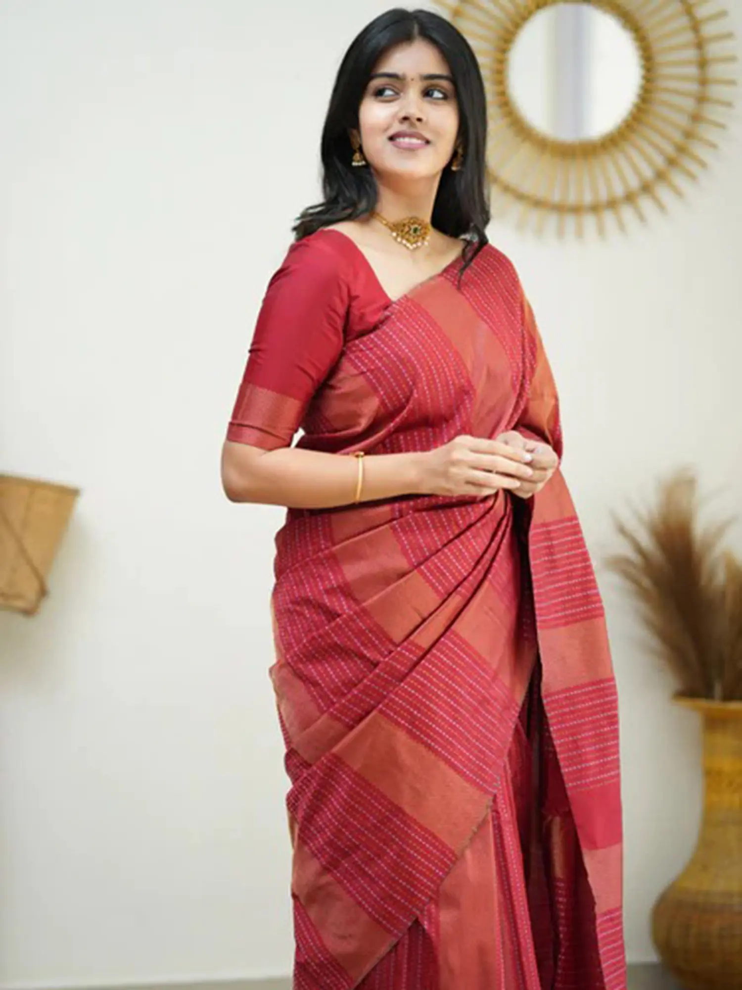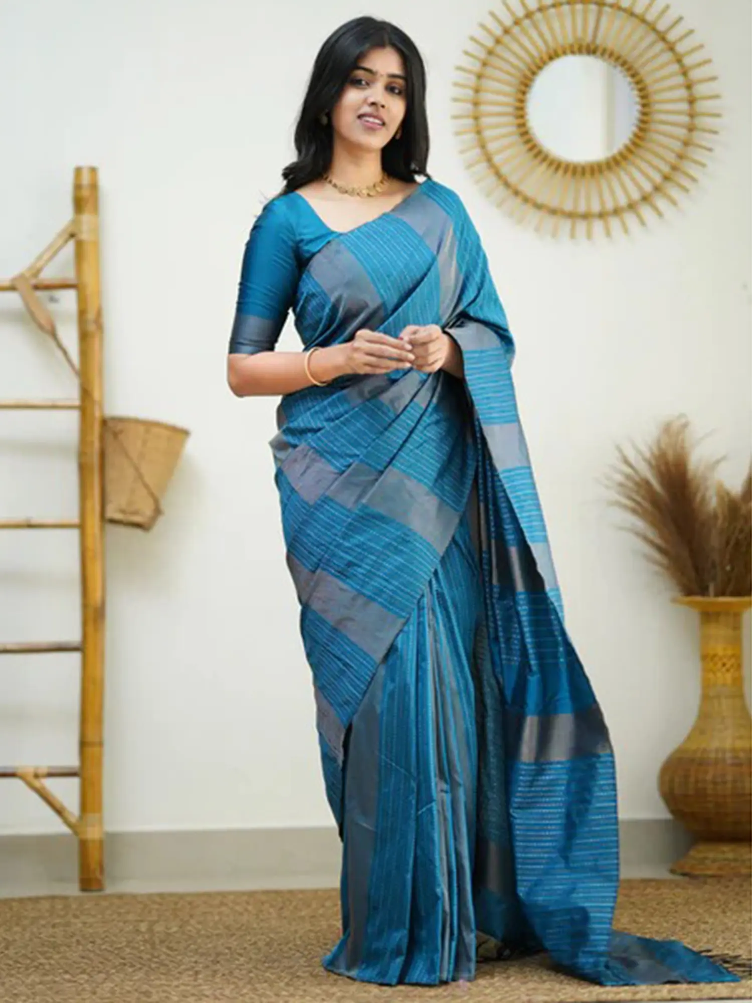 Designed for the modern woman who values both style and comfort, this saree is perfect for everyday wear. The soft, flowing silk drapes beautifully, creating a flattering silhouette that accentuates your figure. The lightweight fabric ensures that you feel comfortable and at ease throughout the day, allowing you to focus on what matters most. Whether you're attending a casual lunch, a family gathering, or a weekend brunch, this saree will effortlessly elevate your look. It is a piece that transcends trends, offering timeless style and unmatched comfort.