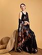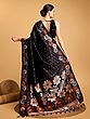 The accompanying blouse, tailored to perfection, complements the saree's allure. Whether you choose to wear it as is or customize it further, it provides a solid foundation for the saree's elaborate design. This ensemble invites you to explore your personal style through accessories. Pair it with elegant statement jewelry, perhaps a delicate necklace that mirrors the floral theme or striking earrings that add a touch of sparkle. Minimalist bangles or a sophisticated bracelet would further enhance the look. The rich color palette of the floral motifs allows for versatility in your choice of accessories, from metallic tones to contrasting hues. Step out in this captivating saree and make every moment a memorable one, radiating effortless charm and undeniable elegance.