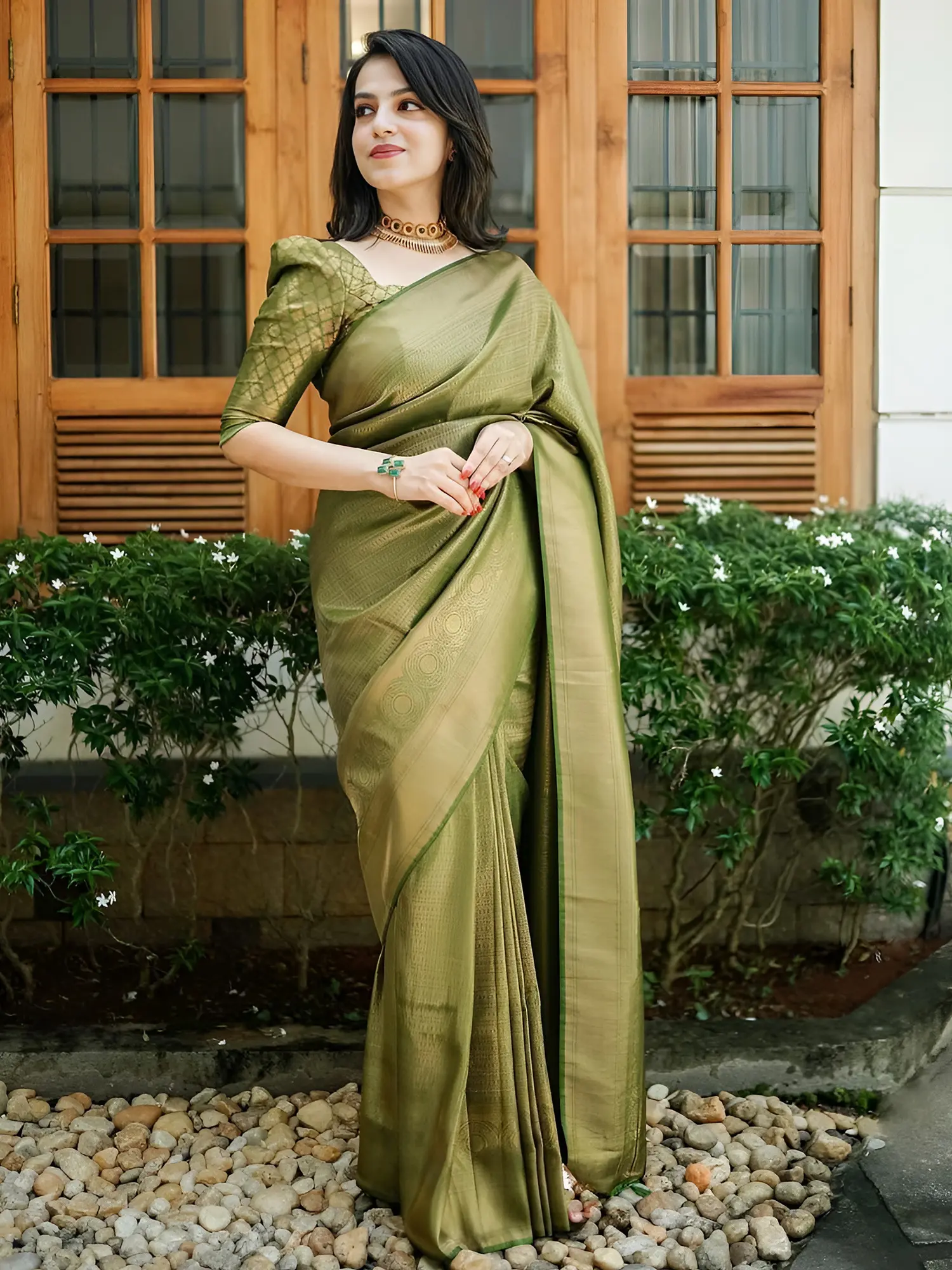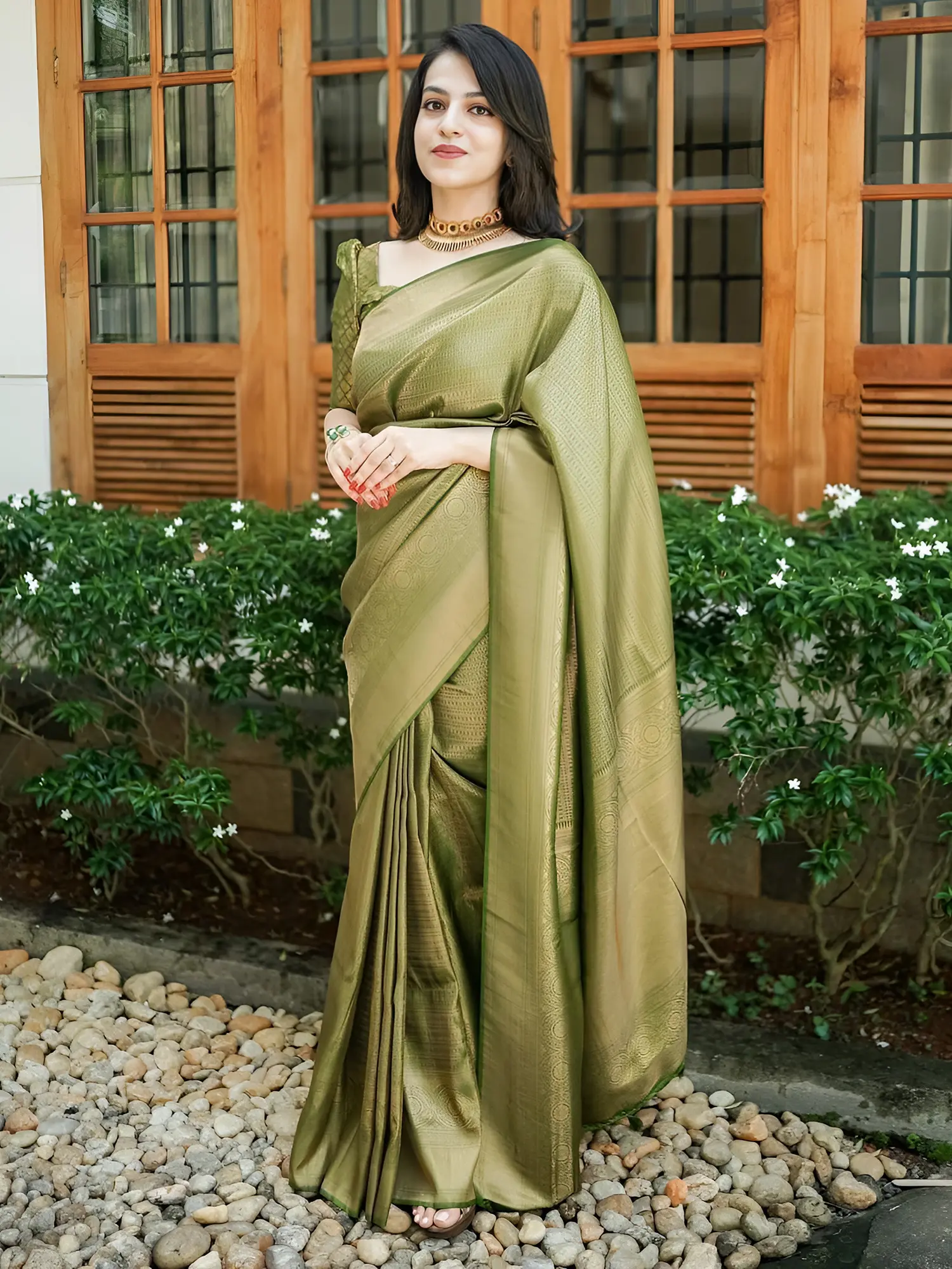 Banarasi Silk Brocaded Kora Sari with Woven Pattern All-over